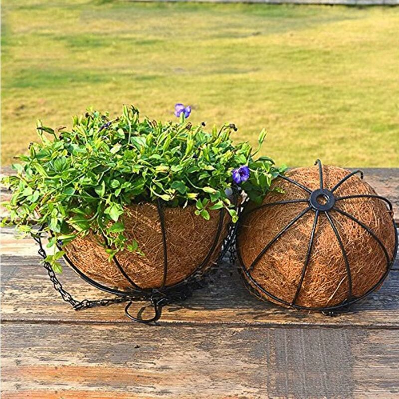 2 Pièces - Panier À Plantes Suspendu Avec Panier En Fibre De Coco Panier A Plantes Mural Jardiniere Semi Circulaire En Metal Metal Et Fibre De Coco Support Mural Decoratif Pour Boite A Fleurs Interieur Exterieur Pot Suspendu Plante Exterieur Lot De 2 Jardinières Suspendues Murales D'angle Auto-arrosage Triangle En Plastique Pot De Fleur Plante Vase Porte-conteneur Pour Succulente Décoration Intérieure Extérieure Violette Africaine Pots De Fleurs à Aucun autre outil n'est nécessaire. Spécification:Matériel: Fibre de noix de coco + ferTaille: comme indiquéEmballage inclus:2 x panier suspenduRemarques:Mesure manuelle, veuillez permettre de légères erreurs sur la taille. La doublure préformée a un excellent drainage et aération pour favoriser la croissance des plantes. Une doublure en fibre de coco écologique et une chaîne de suspension sont incluses pour faciliter l'affichage de vos magnifiques plantes et fleurs. Caractéristiques : Ce type de pot de fleur suspendu en cocotier en fer forgé, les chaînes et les crochets sont en métal, offrant un support sécurisé Panier de fleurs suspendu parfait pour votre terrasse, jardin extérieur intérieur, maison, porche, balcon, fenêtre, etc décor, ajoutez une touche de verdure à votre espace. 2 PièCes Doublure de Noix de Coco Panier en Fibre de Noix de Coco... Le panier de jardinière suspendu en métal est très pratique à assembler. Pot de plante suspendue en pure doublure de coco naturel.