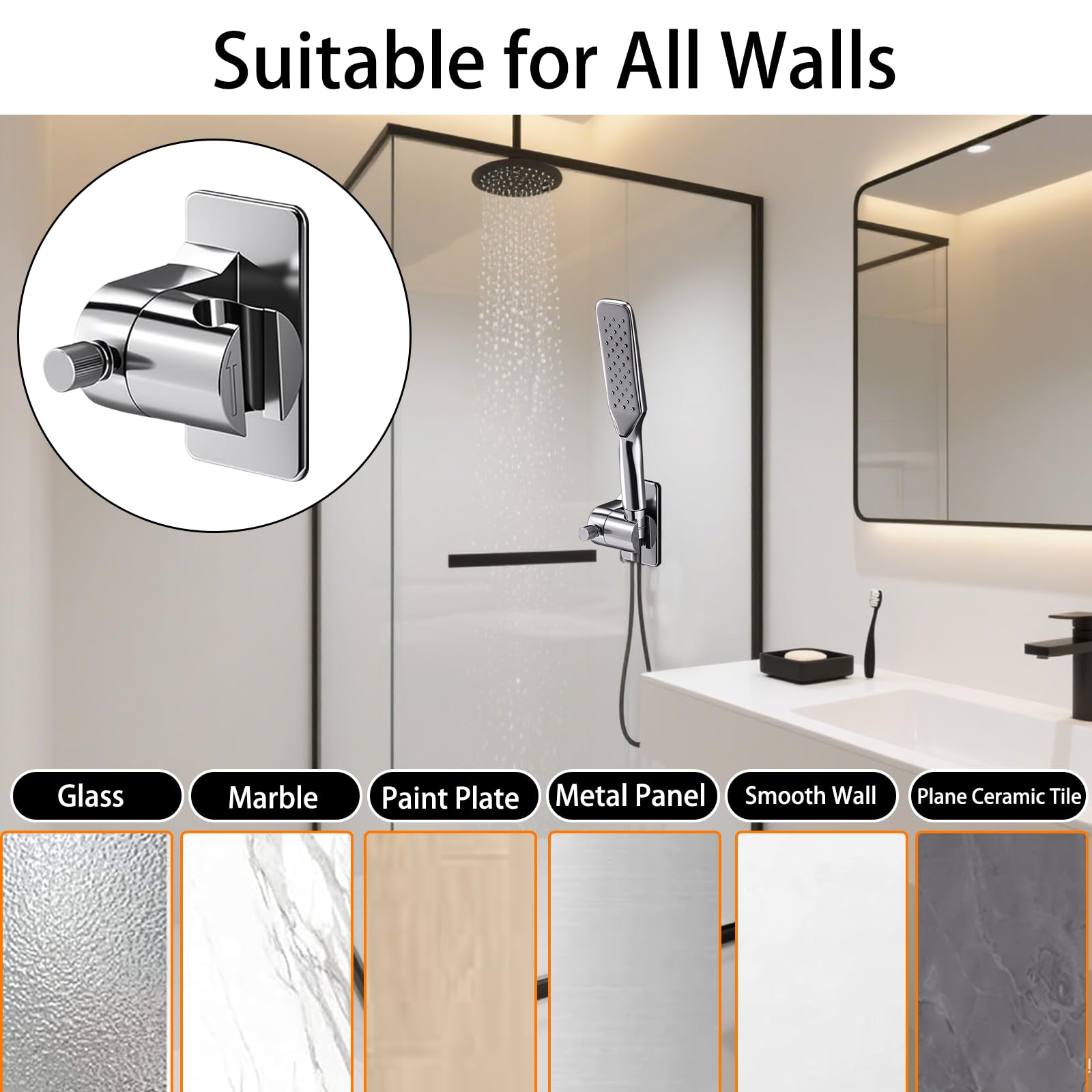 Il suffit de coller les support pommeau de douche ventouse sur des surfaces lisses telles que le carrelage, le marbre ou le verre, d'appuyer fermement et de laisser agir pendant 24 heures pour fixer. Il suffit de coller les support pommeau de douche ventouse sur des surfaces lisses telles que le carrelage, le marbre ou le verre, d'appuyer fermement et de laisser agir pendant 24 heures pour fixer. Parfait pour les locations ou les installations temporaires Support Pommeau de Douche Sans Percage Caractéristiques: Pas de perçage ni d'outils nécessaires : montage à l'aide d'un ruban adhésif puissant - pas de perçage, pas de vis, parfait pour les appartements en location. La finition argentée élégante s'adapte à tous les intérieurs de salle de bains, qu'ils soient modernes ou classiques. 【Compatibilité et conception universelles】Convient à la plupart des pommes de douche du marché (connexion standard). 【360° Rotation et réglage de l'angle】Avec le bouton de réglage facile à utiliser, vous pouvez faire pivoter Support Douche Ventouse à 360° et ajuster l'angle (0°-90°) selon vos besoins. L'écoulement de l'eau peut se faire à la verticale, à l'horizontale ou de manière inclinée, ce qui est parfait pour les membres de la famille dont la taille ou les besoins en matière de nettoyage sont différents. Support douchette ventouse ikea - fleur de passion Pivotement à 360° et réglage de l'angle : 0°-90° réglable en continu, convient à tous les membres de la famille. Support Pour Pommeau De Douche Ventouse Attache Pommeau De Douche Ventouse Douche 360° Réglable BIQIQI Support Douche Sans Perçage Support Douchette 16-27 Mm Support Pommeau De Douche Réglable Support De Douche Chromé Pour Salle De Bain Support Pommeau De Douche Rotatif à 360 Installation Facile Douche Parfait pour les locations ou les installations temporaires. Matériau ABS de haute qualité : résistant à l'humidité, durable, ne rouille pas, peut être utilisé pendant longtemps. Capacité de charge élevée : jusqu'à 3 kg, permet de maintenir la plupart des pommeaux de douche en toute sécurité. Laisser durcir 24 heures avant utilisation. La surface lisse empêche l'accumulation de calcaire et assure un éclat argenté durable, idéal pour une utilisation quotidienne dans la salle de bain.