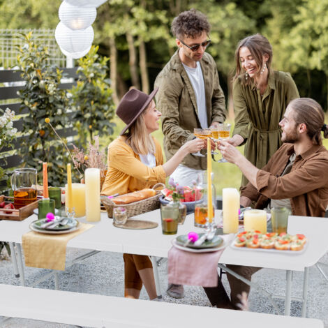 Table Picnic Pliante 180cm Strattore Table De Jardin En Plastique - Pliable 180 X 70 X 74 Cm, Table De Jard Table En Plastique Pliable Haute fonctionnalité grâce au mécanisme de pliage, rangement peu encombrant Table Plante Plastque Avec Banc Notre ensemble de jardin, composé de deux bancs et d'une table, n'est pas seulement le compagnon idéal pour le camping, il est aussi parfaitement adapté à la pêche, au jardin ou encore au marché aux puces Dimensions du siège: env. Excellente stabilité sur presque tous les terrains grâce aux pieds antidérapants / Veuillez noter que nous ne livrons pas sur les îles Table Pliante - Frixovel - Rectangulaire - 8 Personnes - Plastique - Extérieur - Jardin 90 x 70 x 8 cm (LxLxH), poids table: env., 10,5 kg Banque d'épaisseur: env., 4,8 cm, Dimensions plié: env. Poids par banc: env., 8,5 kg, Max. capacité de poids: env., 270 kg 90 x 70 x 8 cm (LxLxH), Poids: env., 10,5 kg, Max. 180 x 70 x 74 cm (LxLxH), dimensions plié: env. 91,5 x 28 x 9,6 cm (LxLxH), poids par banc: env., 8,5 kg 91,5 x 28 x 9,6 cm (LxLxH)
