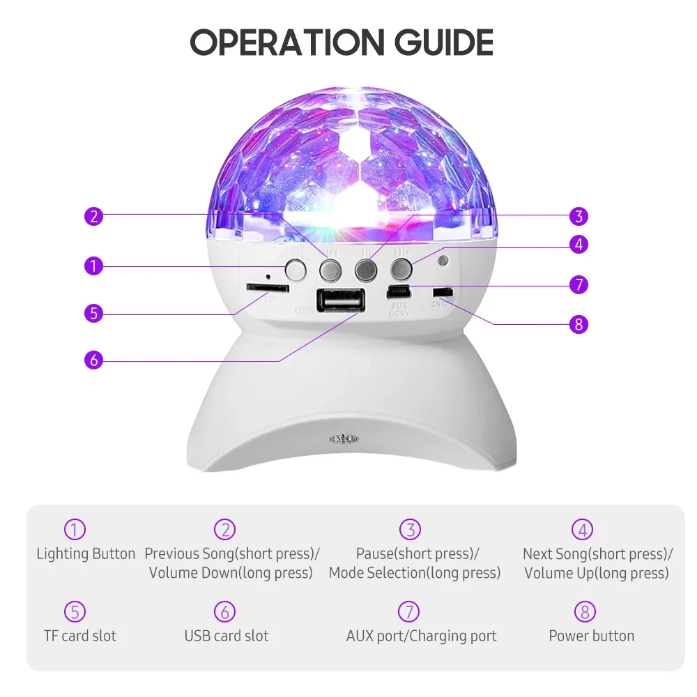 La boule disco a un design simple, plug-and-play. Apparence exquise, design ultra léger, peut être placé ou accroché à volonté, c'est l'atmosphère pour karaoké, bar, fête, Noël, Halloween. Effet lumineux : Nos lumières de fête combinent 3 types d'éclairage : des boules disco à 6 couleurs, des lumières d'ambiance colorées et des lumières noires pour les soirées fluo. Grâce à la télécommande, vous pouvez éclairer la zone souhaitée et ajuster la combinaison de couleurs à votre guise RVB LED cristal plafonnier bluetooth haut-parleur télécommande... Les néons créent un environnement confortable ou coloré. boule disco - boule disco avec lumière stroboscopique DJ,Lampe Vous pouvez placer des lumières stroboscopiques LED sur une table, un bureau ou un sol, ou les fixer à un mur ou au plafond pour un effet amélioré. Cadeau de fête parfait : la lumière stroboscopique est un excellent outil pour pimenter n'importe quelle fête. Boule Stroboscopique Haut-parleur Bluetooth Lumière Disco DJ, Lumières De Scène, Lumières De Fête Sur Scène Décoration Fête Karaoké Lumière de charge USB : la lumière de danse rechargeable est légère, facile à transporter, et a une longue durée de vie. Lumières LED magiques RVB : plusieurs modes de projection de lumière RVB, rouge, bleu, vert, changement automatique multicolore. Projection pour obtenir un large effet panoramique.