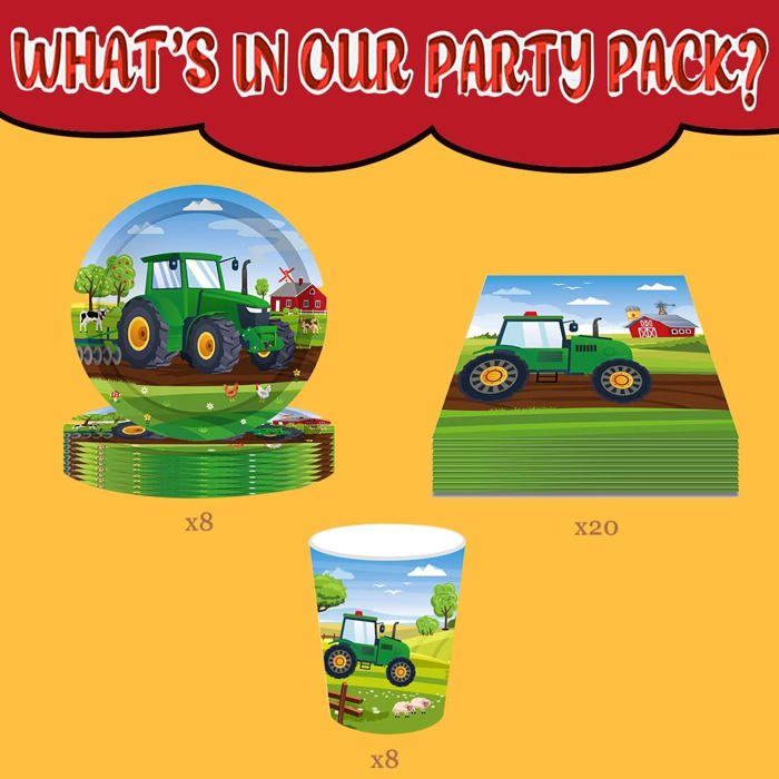 Wenn Sie eine Frage zum Produkt haben, helfen wir Ihnen gerne weiter Diese Bauernhof-Traktor-Pappteller sind ideal für Kuchen oder 'Snacks' - sie verbinden Spaß für die Kleinen mit praktischer Organisation für Erwachsene Sie erhalten: 20 x Servietten, 20 x 9-Zoll-Teller, 20 x 7-Zoll-Teller Set Assiettes Serviettes Papier Tracteur 60 Pièces Assiettes D'Anniversaire Rose,Serviettes Papier Assiettes Rose,Bébé Fille Assiettes Décoration Fête Ferme Lot de 61 pièces de vaisselle de fête de la ferme, tracteur vert, thème épouvantail, décoration de fête d'anniversaire d'enfant, vaisselle de ferme, assiettes, tasses, serviettes en papier, nappes PYAILI Enseble de vaisselle de fête 121 pièces avec assiettes... Décorations D'Anniversaire - Serviettes Et Assiettes - Pour Enfants