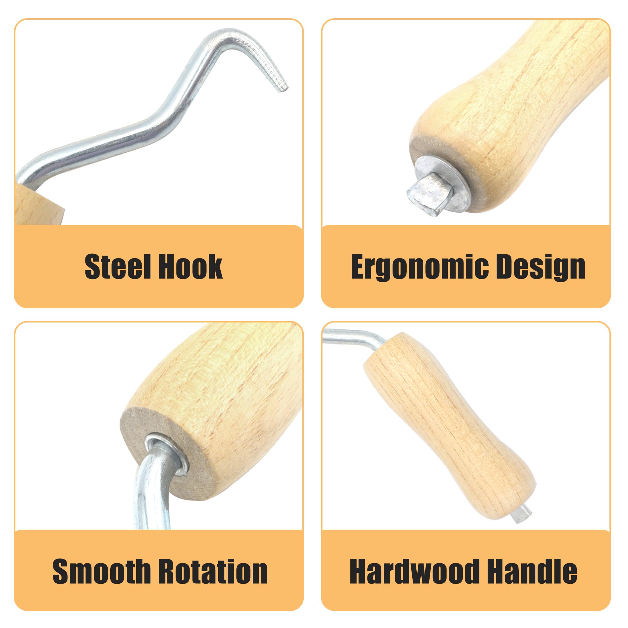 GEARLINTON Lot De 3 Torsades D'armature Avec Poignée En Bois, Fer à Béton, Fil De Fer, Outil à Main En Acier Pour Torsion De Clôture, Lot De 3 Barres D'armature D'armature Ou Acier Gros Plan Fils D'acier D'armature Grenouille pour tirage de câble