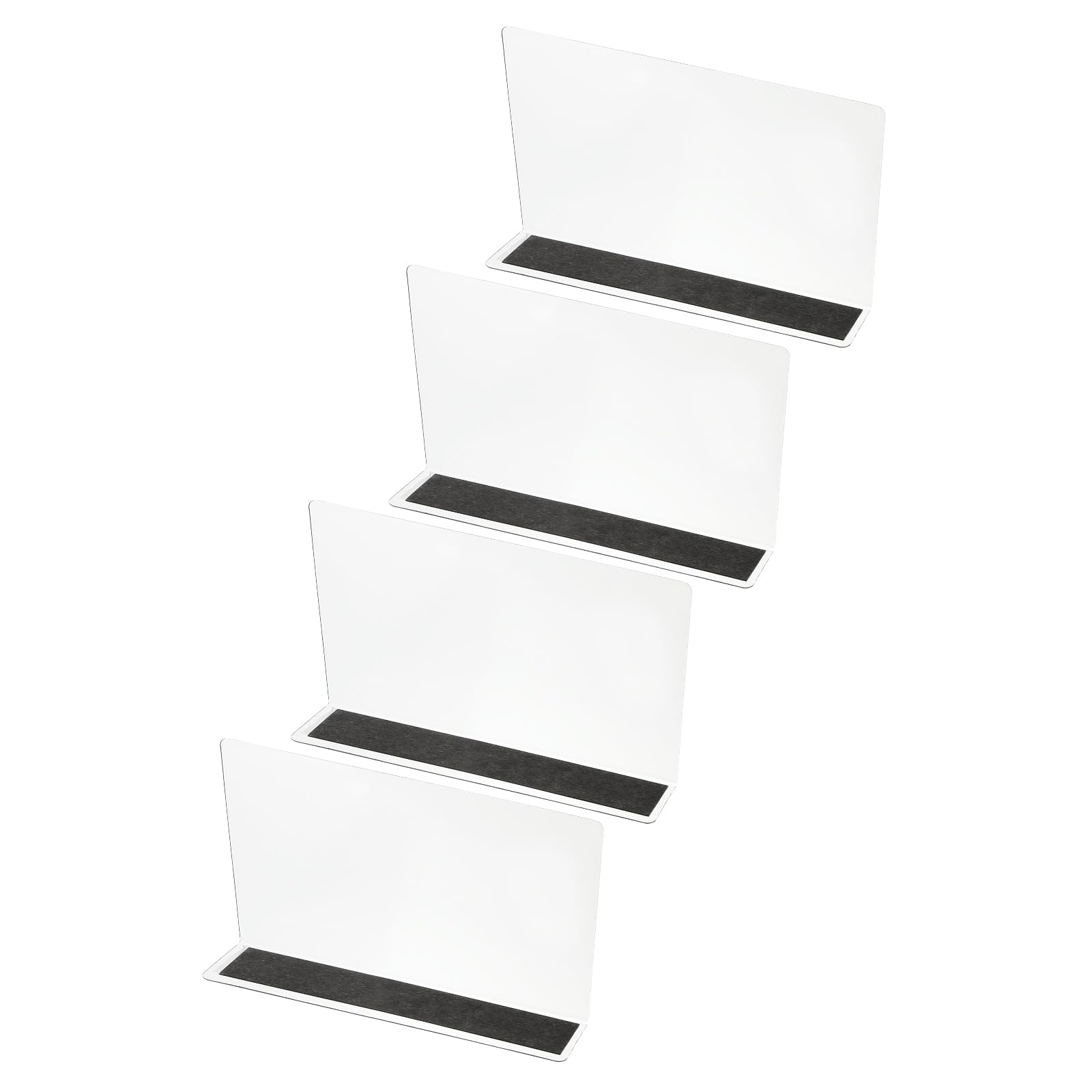 Spécification : Couleur : Transparent; Matériau : Acrylique; Taille totale : 250 x 30 x 60mm / 9., 84 x 1., 18 x 2., 36 pouces (L*l*H); Épaisseur : 1mm / 0., 04 pouce; Liste d'emballage : 4 x Séparateurs d'étagères PATIKIL Lot de 4 séparateurs d'étagère magnétiques en acrylique pour organisation de placard, 28 x 3 x 6,1 cm, étagères de placard de cuisine sous le lit, pour chambre à coucher, cuisine, bureau Ce séparateur d'étagère est polyvalent et peut contenir une variété d'articles. Avantage : Fabriqué en acrylique de qualité avec une grande transparence, pas de jaunissement et des bords arrondis, longue durée de vie; Avec cette partition à 90°, les produits sont placés de manière plus ordonnée et belle, et la classification est efficace; La conception en forme de L de ces séparateurs d'étagères peut être utilisée dans les coins de différents environnements, ne tombe pas facilement ou ne bascule pas. REMARQUE : Veuillez prêter attention à la taille avant l'achat. Ces séparateurs maintiennent vos articles debout et bien rangés. Il peut également être utilisé sur le bord du bureau pour combler l'espace entre les bureaux et le mur pour empêcher les articles de tomber. SÉPARATEURS D'ÉTAGÈRES DE placard, organisateur de vêtements de garde Remarque : Veuillez prêter attention à la taille avant d'acheter. Utilisez-le pour stocker et trier la plupart des articles, tels que les boissons, le pain, les cookies, les vêtements et les bouteilles d'épices. Aucun outil n'est nécessaire pour l'installation. Lot De 4 Étagères De Rangement En Métal Pour Placard De Cuisine, Etagère Vaisselle, Organisation... Organisateur Placard Transparent 4 SÉPARATEURS D'ÉTAGÈRES Pour L'Organisation Du Placard, Organisateur D Séparateur à Clipser Sans Outil Instructions : Organisez facilement les étagères désordonnées ou encombrées en accrochant les articles verticalement en place.