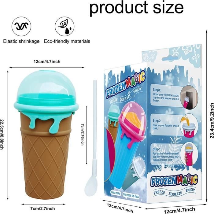 Original Slushy Mug - Le Slush Maker - reconnaissable à l'impression. MAGIC FREEZ MUG Slush Eis slushymaker Chillfactor EUR 2,50 - PicClick DE Slush Maker - Slushy Mug pour de la glace en quelques secondes Tu cherches un rafraîchissement, mais la glace à l'eau est trop froide pour toi et la glace dans la boisson trop aqueuse ? Avec l'original Slushy Mug Slush Maker, nous avons exactement ce qu'il te faut ! Maintenant avec une garantie de satisfaction à 100% ! 🎁 𝗦𝗘𝗧 𝗖𝗢𝗠𝗣𝗟𝗘𝗧 - Avec couvercle et cuillère à boire, capacité de 200 ml. 🌈 𝗗𝗘 𝗠𝗨𝗟𝗧𝗜𝗣𝗟𝗘𝗦 𝗣𝗢𝗦𝗦𝗜𝗕𝗜𝗟𝗜𝗧É𝗦 - Que ce soit de la limonade, du jus de fruits, du lait au chocolat ou des cocktails, la fête est garantie avec notre gobelet Slush ! Idéal pour des shakes glacés rafraîchissants pendant vos vacances d'été ! Slushy Cup Slushie Maker Cup DIY Slush Ice Maker, Gobelet de Congélation Smoothie Tasse avec... La cuillère fournie facilite grandement le repas. Gobelet Slush Magic Freez Magic Freez Slushy Maker - Gobelet à Gobelet Magique Slush Freeze Gobelet Slush Magic Freez Magic Freez Slushy Maker - Gobelet à Glace Pour Faire Des Granités Maison - Avec Cuillère/paille - Rose Machine à Glace Pilée Tasse Congélation Slush Maker 200ml 16,5 cm (hauteur) et 11,4 cm (diamètre). Le Slushy Mug en détail : Il suffit de verser les boissons, d'attendre quelques instants, de remuer et c'est prêt. Génial, pas seulement pour l'été, mais toujours à portée de main dans le congélateur. La paille intelligente et la cuillère sont déjà comprises dans la livraison. Le gobelet Slushy peut contenir environ 200 ml de boisson.