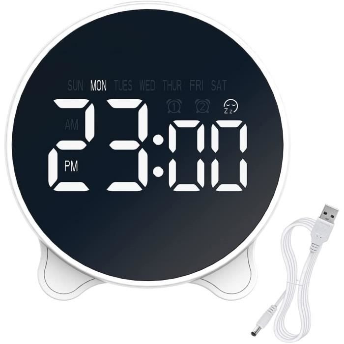 Réveil Numérique, Horloge Numérique Réveil à Pile Silencieux Pour Enfants Adultes Grand Ecran Led Temperature Calendrier Reveil De Voyage Avec Veilleuse Snooze Fonction Fiche Technique Et Prix Au Mar 2 Passez facilement du mode standard à l’heure avancée et inversement. L'écran LED affiche l'heure, le jour de la semaine et l'alarme en même temps. Appuyez longuement sur le bouton de réglage de l'horloge, on passe facilement de 12 à 24 heures, on règle l'heure et le jour de la semaine, ce qui est pratique et facile à utiliser Notre réveil numérique avec écran miroir intègre 3 programmes d'alarme, deux ports USB, 6 niveaux de luminosité et une fonction snooze bien pensée. Commencez chaque journée avec précision et confort Mode Nuit et Luminosité Ajustable: Avec 3 niveaux de réglage, cette horloge digitale murale s’adapte à votre environnement. Idéal pour une gestion efficace du temps toute l’année. HAEGER Snooze - Radio-réveil numérique - Fonction Snoozer/Sommeil, double réveil, 20 mémoires de stations (10 FM / 10 Am), écran LED rouge pour une visualisation facile Réglage Manuel de l’Heure d’Été (DST): Le réveil numérique est équipé de la fonction DST permettant d’ajuster l’heure d’été en un seul clic. Nom du Produit : Réveil Numérique LED 6,7” avec Touche Snooze et Mode NuitCouleur : Noir avec affichage numérique blancQuantité : 1 pièceDimensions : Écran de 6,7 pouces, boîtier compactAlimentation : Câble USB-C ou 3 piles AAA (non fournies)Connectique : Bouton DST, touche LIGHT, commutateur 12H, snoozeAffichage : Heure, date, mode 12HMatériaux : Plastique ABS léger et résistantFonctionnalités principales :Réveil Connecté : Ce réveil numérique propose une interface simple avec des boutons accessibles et des fonctionnalités pratiques pour un usage quotidien. Économie d’Énergie Intelligente : L’affichage se coupe en mode batterie pour maximiser l’autonomie. Affichage LED Clair et Moderne: L’horloge numérique dispose d’un grand écran LED de 6,7 pouces pour une lecture facile de l’heure et de la date. Grâce à sa double alimentation, il convient aussi bien à un usage quotidien qu’en déplacement. Double Alimentation USB ou Piles: Fonctionne via câble USB-C ou avec 3 piles AAA (non incluses). Appuyez sur LIGHT pour ajuster la luminosité ou activez le mode nuit pour éviter toute gêne lumineuse pendant le sommeil. Snooze Personnalisable : La fonction de rappel permet de reprogrammer votre réveil en fonction de vos habitudes de sommeil.