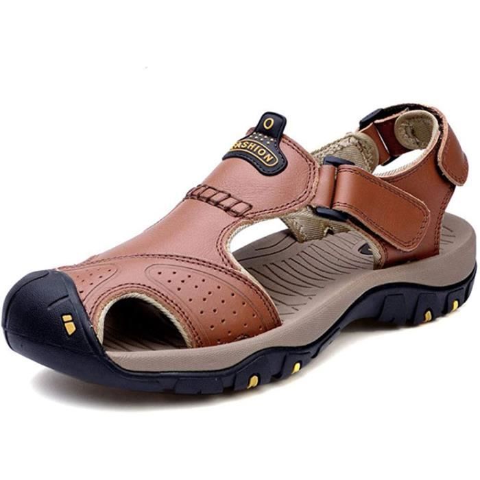 Le système de ventilation bien pensé garde vos pieds à la température agréable même par temps chaud. Les sandales sont idéales pour la randonnée, les sports nautiques et d'autres activités de plein air. Contrairement à ce que l’on pourrait penser, les sandales homme de sport ne sacrifient pas le soutien pour la légèreté. Elles sont souvent dotées de semelles intercalaires en EVA ou en mousse, offrant un excellent amorti pour protéger vos pieds des chocs Bracelet anneau Argent cordon cuir réglable homme Design étanche : sandales de sport et d'extérieur de qualité supérieure avec dessus en cuir robuste pour une protection optimale dans toutes les activités Tsuukuie Sandales à bout fermé pour homme - Chaussures aquatiques Amortissement des chocs : la semelle intermédiaire innovante MD avec une excellente absorption des chocs protège les articulations pendant la marche et le sport Respirant : système de ventilation bien pensé avec doublure en maille assure un climat agréable pour les pieds lors de longues activités de plein air Sandales étanches Cuir Plein Air Tsuukuie Chaussures De Pataugeoire Pour Homme - Sports De Plein Air - Chaussures De Voyage Décontractées En Maille Respirante Et Légère, Noir Semelle MD Amortissante Le bout fermé offre une protection supplémentaire, tandis que la coupe ergonomique assure un confort optimal même lors de longues randonnées. La tige en cuir imperméable garantit durabilité et protection, tandis que la doublure en maille respirante assure un climat agréable au pied. La semelle en caoutchouc robuste convainc par son motif spécial qui assure un maintien sûr sur différentes surfaces.