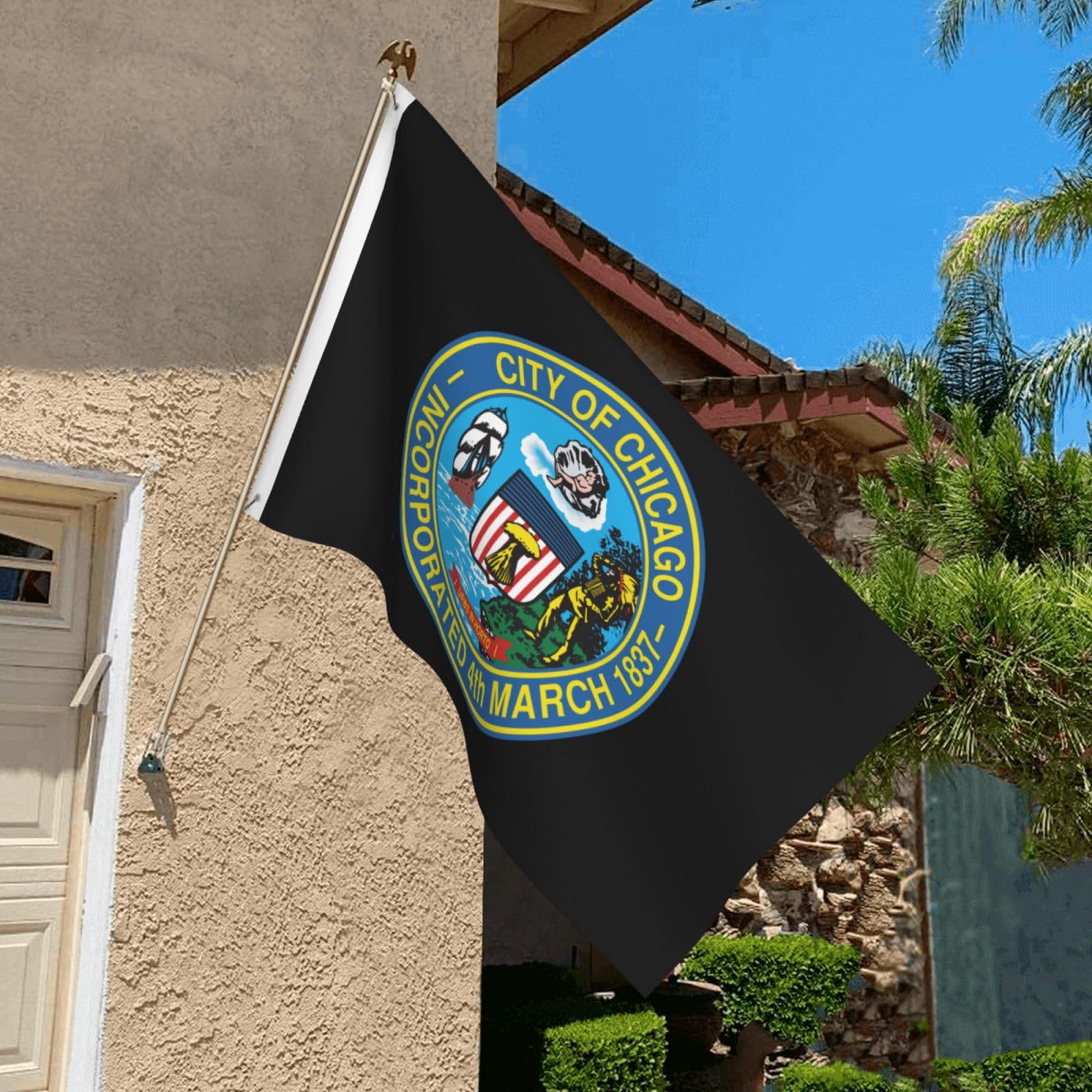 Lavage à la main ou en machine doux, ne pas utiliser d'eau de Javel, repasser à basse température. Jour De Lindépendance Sans Soudure Motif Avec Des Ballons Israël... Vous pouvez facilement décorer votre avant-cour, patio, pelouse, porche, véranda, porte d'entrée, bureau, ou même votre salle de classe, bureau, appartement, maison ou magasin. Le drapeau a des œillets métalliques, ce qui rend l'installation et le démontage très pratiques. Taille : 0,9 x 1,5 m, ce qui est adapté pour la décoration intérieure et extérieure et attire facilement l'attention des autres. Drapeau de Chicago de 0,9 x 1,5 m, drapeau de la ville de Chicago avec œillets en laiton, très résistant, bandera de Chicago, double impression 150D intérieur/extérieur, bannière de jardin avec résistant Matériau : impression simple face pleine largeur, 100 % polyester. Eugenys Drapeau Chicago W Win (0,9 x 1,5 m) – Matériau 100 % polyester – Grande bannière avec œillets en laiton durable – Parfait pour accrocher intérieur/extérieur Le matériau de haute qualité offre une résistance durable et est résistant aux UV, à la décoloration pour les garder volants pendant de nombreuses saisons. Le tissu est léger et élégant, vous permettant de voler même dans la brise, et vous pouvez fièrement présenter votre drapeau n'importe où.