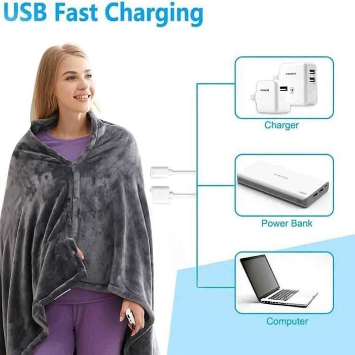 Réchauffement précis : plus de chauffage inégal ! La fonction de chauffage rapide vous aide à résister au temps froid et à vous sentir rapidement à l'aise. Avec une taille de 160 x 80 cm, notre couverture chauffante en flanelle douce offre une couverture suffisante. Idée cadeau chaude et pratique : pendant les mois froids d'hiver, vous serez certainement une couverture chauffante électrique confortable et portable. Notre couverture chauffante USB peut être alimentée par une batterie externe pour vous offrir de la chaleur lors de vos déplacements. Couverture Chauffante électrique USB 5V, Couverture électrique 3 niveaux de chauffage : appuyez longuement sur le bouton marche/arrêt pour activer/désactiver la couverture chauffante électrique portable. En appuyant sur un bouton, vous pouvez choisir le niveau de confort souhaité. Son bouton unique offre trois niveaux de chaleur pour un réglage facile : Élevé (rouge), Moyen (bleu) et Bas (vert). Le contrôle de la température est idéal pour s'adapter aux changements de saison Couverture Chauffante USB, Couverture électrique Portable Avec 3 Niveaux De Chauffage Couverture Chauffante Electrique Poncho Portable Pour Les Epaules Et Le Cou Lavable En Machine 156 X 86 Cm Gr 89560331 Le design simple est non seulement fonctionnel, mais aussi élégant. Caractéristiques : Nom du produit : couverture chauffante Couleur : gris Matière : polaire corail Dimensions : 160 x 80 cm Température : Lumière rouge : 60 ℃ Lumière blanche : 50 ℃ Lumière bleue : 40 ℃ Contenu de l'emballage : 1 couverture chauffante électrique. Couverture chauffante USB : Cette couverture chauffante USB fonctionne avec n'importe quel port USB 5 V, comme un chargeur, une batterie externe, un ordinateur ou un port USB de voiture. Que vous campiez en plein air, à la maison ou au bureau, vous aurez toujours chaud pendant les nuits froides Que ce soit à la maison, au bureau, dans la voiture ou au camping, cette couverture chauffante électrique vous réchauffe en un tour de main. Lorsque vous portez la couverture chauffante USB, une plus grande plaque chauffante couvre votre dos, et quatre plaques chauffantes sont ajoutées au niveau de la poitrine et de la taille pour vous offrir une chaleur rapide. Les éléments chauffants à l'intérieur sont fabriqués en fibre de carbone de qualité supérieure et chauffent rapidement., 2., La couverture chauffante électrique dispose de 3 niveaux de chauffage (40 °C, 50 °C, 60 °C) réglables en appuyant simplement sur un bouton. L'écharpe chauffante pourrait également être le cadeau parfait pour Noël pour apporter de la chaleur à vos proches et amis.