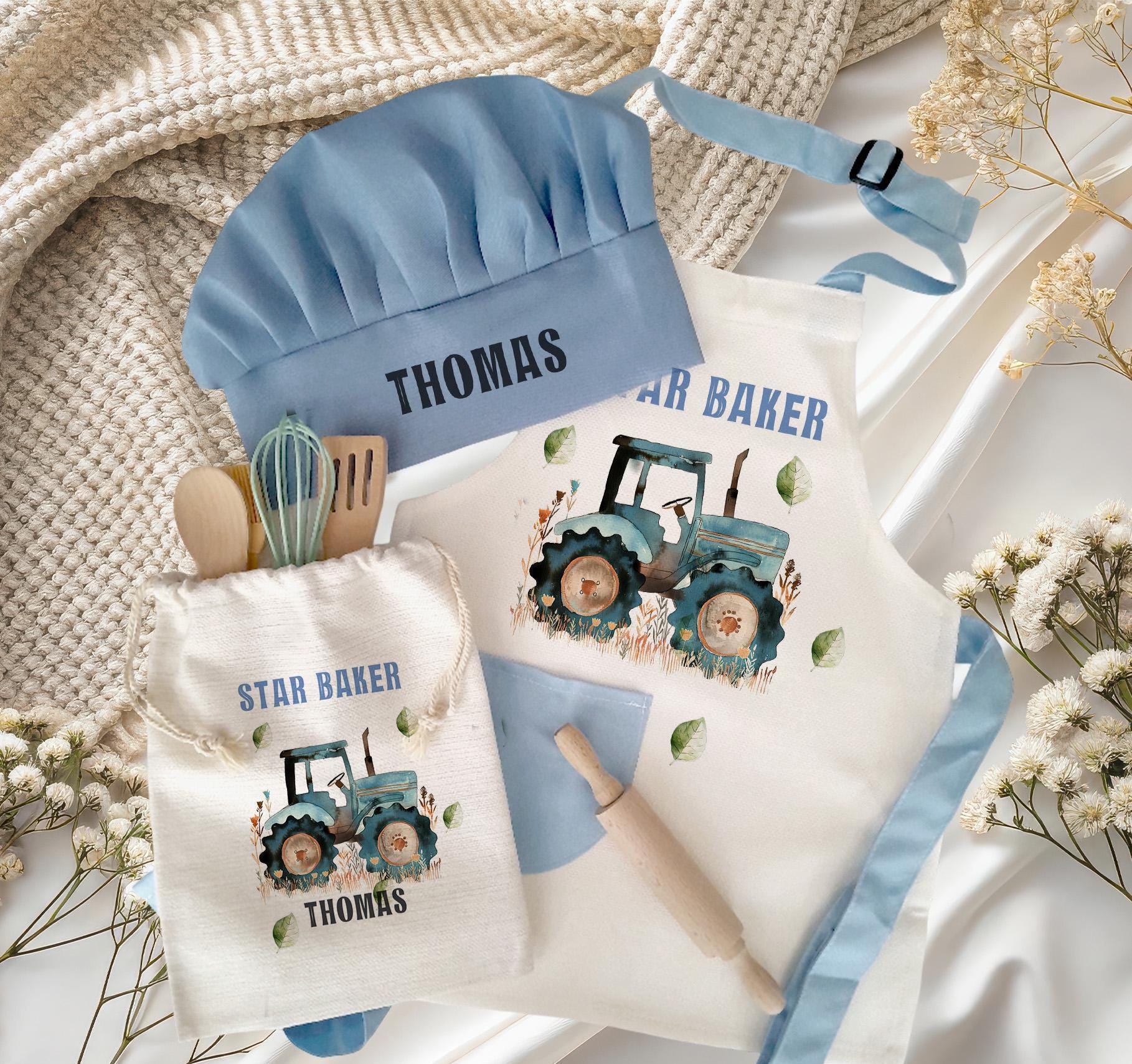 Ensemble Pâtisserie Enfant Personnalisé Tablier Et Chapeau Personnalisés à Imprimé Tracteur De Ferme Avec Service De Pâtisserie Pour Enfants, Tablier De Cuisine En Lin - France Tablier Personnalise Le tablier dispose de sangles réglables au niveau du cou et de la taille pour un ajustement confortable, tandis que la toque de chef ajoute une touche professionnelle à leur ensemble de cuisine. Remarque : les maquettes présentées dans nos images de produits sont uniquement à des fins de représentation et d'illustration. - Matériau en lin durable avec poche. Matériaux de qualité supérieure : fabriqué à partir de tissu de lin de haute qualité, assurant confort et durabilité pour d'innombrables aventures de pâtisserie Prêt à offrir : un cadeau idéal pour Noël ou une occasion spéciale pour les enfants qui aiment cuisiner et faire des pâtisseries, créant des souvenirs durables dans la cuisine Design pratique : la sangle de cou réglable et les liens à la taille sur le tablier offrent un ajustement confortable, tandis que la toque de chef élastique assure un port sûr Les impressions par sublimation sont de qualité supérieure et plus résistantes à la décoloration. Transformez votre tout-petit en un pâtissier étoilé avec ce charmant ensemble de pâtisserie personnalisé sur le thème de la ferme de tracteurs bleus. Kit rentrée scolaire modele ferme bleu - Bébé Panda L'ensemble comprend une toque de chef personnalisée avec le nom de votre enfant, un tablier assorti orné d'un tracteur magnifiquement illustré au milieu des cultures et des feuilles, et un sac à cordon assorti. Tablier enfant brodé personnalisé prénom fille - Toque de chef avec élastique à l'arrière. Parfait pour les jeunes chefs en herbe, cet ensemble complet est livré avec des outils de cuisson en bois essentiels pour inspirer les aventures culinaires créatives. - L'image est sublimée dans le matériau, non collée ou repassée. - Veuillez vérifier les dimensions de votre enfant avant d'acheter le tablier. Idéal pour les anniversaires, Noël, Pâques ou toute autre occasion. L'ensemble en bois comprend : 1 planche en bois (non gravée), 1 rouleau à pâtisserie (non gravé), 1 spatule (non gravée), 1 cuillère (non gravée), 1 pinceau à pâtisserie (non gravé), sac de cuisson : 25 x 30 cm, matériau polyester, parfait pour mettre des livres de cuisine. Tablier et chapeau personnalisés à imprimé tracteur de ferme avec service de pâtisserie pour enfants, tablier de cuisine en lin. Les Top vendeurs ont montré qu'ils proposaient régulièrement une super expérience d'achat Que ce soit pour aider dans la cuisine ou pour jouer avec imagination, cet ensemble de pâtisserie personnalisé est un cadeau de Noël précieux ou un souvenir spécial qui créera des souvenirs durables. - L'image est imprimée directement sur le tablier et sur un sac, ce n'est pas un transfert, c'est une impression professionnelle de haute qualité.