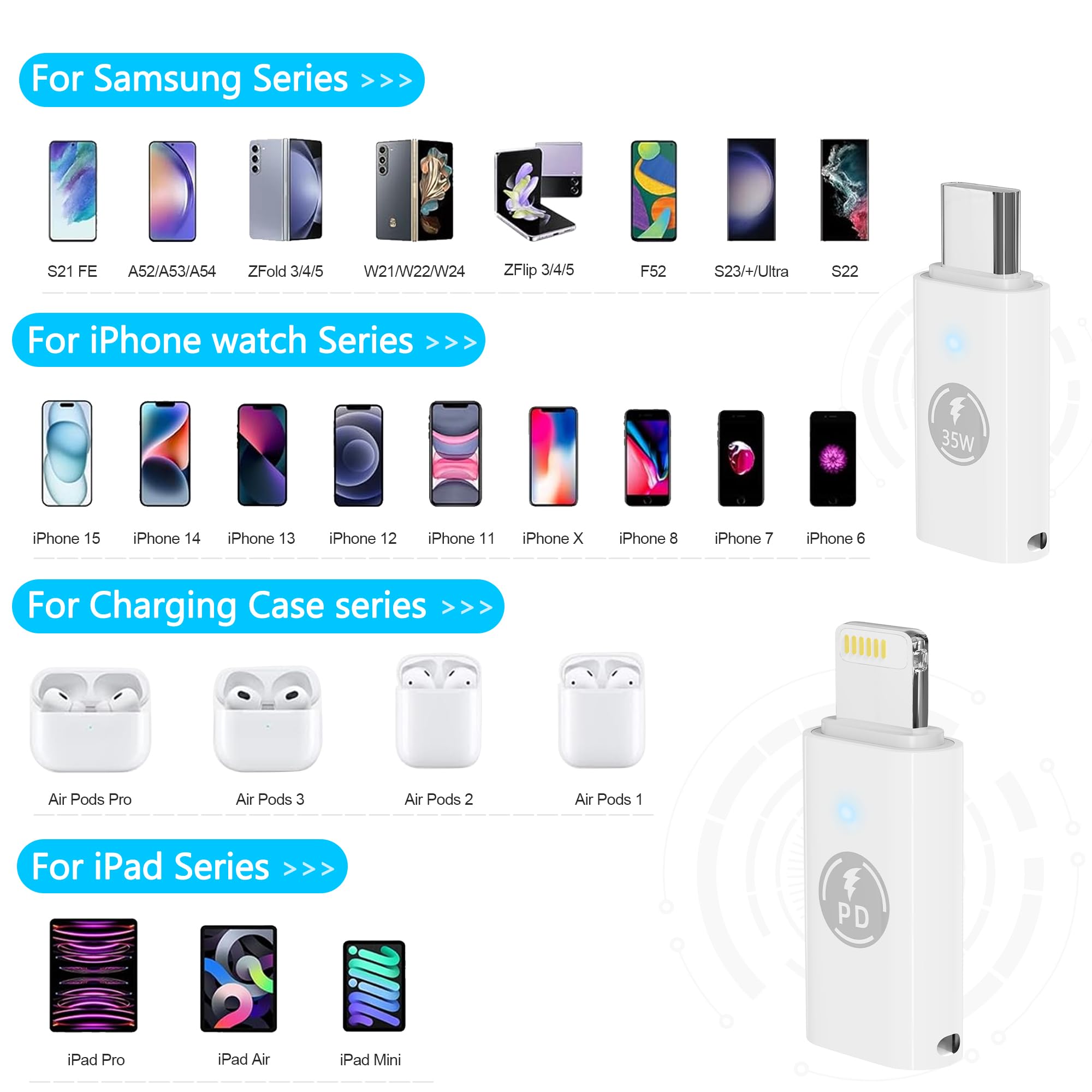 Large compatibilité : adaptateur USB C vers Lightning compatible avec iPhone 15/15 Pro/15 Pro Max/15 Plus, iPad Pro/Air/Mini, Samsung Galaxy Z Flip 5/Z Fold 5, Galaxy S23/S23 Ultra/S23 /S22/S21/S21 Plus/S20/Note 20/20 Ultra/10/Google et autres appareils de type C Remarque : (Charge rapide, ne prend en charge que le câble 3A60W Type-C, non compatible avec le câble 5A100W Type-C) Adaptateur USB C Vers Lightning Wewoo Adaptateur Blanc Pour IPhone/iPad Lightning 15cm - Câble Lightning - Rue Du Commerce Charge Rapide IPhone 20W Contenu : 3 adaptateurs Lightning USB C - Compatible avec les adaptateurs Lightning vers USB-C femelle pour Apple 12 11Pro Max miniX/XR/XS/SE/8/7/6Plus - Connecteur de câble de charge pour téléphone Pad Air - Apparence bien conçue ☑【Compatibilité universelle] Compatible avec Phone 11/11Pro, Phone XS/XR/XS Max, Phone X/8/8 Plus, Phone 7/7 Plus/6/6 Plus/6s/6s Plus, Pod Nano 7, Pod Touch 5, Pad 5, Pad 4, Pad Air 2, Pad Air, Pad mini 3, Pad mini 2, Pad mini Retina, Compatible avec Light-ning Si vous avez des questions, vous pouvez nous envoyer un e-mail. Adaptateur d'éclairage USB C]Branchez l'adaptateur Light-ning vers USB C, et votre câble USB Type-C peut être remplacé par un câble Light-ning, puis vous pouvez utiliser ce câble pour connecter votre iPhone Charge, iPad compatible et la série iPod Chargeur Rapide 20W - Blanc - USB C vers Lightning - 1m - Compatible iPhone/ iPad - Téléphonie ☑【Prise en charge de la charge rapide 20 W PD】 Associez-le à l'adaptateur secteur approprié et à un câble de charge rapide USB Type-C compatible pour obtenir la fonction de charge rapide pour votre iPad Pro, Pad et Phone 8 ou ultérieur. Remarque : (câble USB A vers Type C, ne peut charger que normalement, ne prend pas en charge la charge rapide) (Remarque : cet adaptateur ne peut pas être utilisé avec un casque)