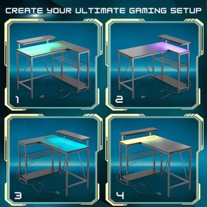 Idéal pour des séances de jeu ou de travail ininterrompues ! Fini les vibrations : une fiabilité durable. Transformez n'importe quel coin en un espace de jeu rien qu'à vous. Branchez votre PC, chargez votre téléphone et votre tablette en même temps, sans surcharge. Luci a LED modulari prese di corrente reversibili supporto per Monitor Home Offi Sa structure en métal renforcé et son plateau haute densité garantissent une stabilité totale, même sous plusieurs écrans. Il est équipé d'une multiprise intégrée avec 2 prises classiques, 2 ports USB et 1 port Type-C. Cette solution gain de place transforme vos coins inutilisés en un espace organisé et branché, idéal pour le travail, le jeu ou le maquillage. Beaucoup plus complet qu'un simple plan de travail, il combine rangement, ergonomie et prises à portée de main. Ce bureau angle gaming est conçu pour accueillir tout votre setup : écran(s), unité centrale, clavier, souris, et même votre imprimante. Le Rolanstar Bureau d’Angle en L avec Tiroirs, LED et support écran offre une solution complète pour aménager un poste de travail pratique et stylé. Ses nombreux rangements, son éclairage personnalisable et son ergonomie le rendent adapté aux profils variés, du gamer au professionnel 【Un bureau gamer d'angle, malin et gain de place】Ce petit bureau d'angle est la solution idéale pour exploiter les coins perdus ! Astucieux : il peut même servir de coiffeuse – polyvalence à 100% ! Espace de rangement super spacieux Un placard de rangement avec 3 tiroirs et 2 tag res est attach au bureau en forme de L. De plus, il y a un support pour moniteur et un support pour unit centrale, ofant amplement d'espace pour tous vos articles de bureau 1 Support pour écran 2 Rangement ouvert 3 Équipé de 2 crochets Aménagez un coin tranquille et concentrez-vous. Aménagez un coin de jeu ludique et sécurisé dans la chambre de votre enfant. 【Il s'adapte à VOTRE espace】Idéal pour une chambre, un salon ou un studio, ce bureau gaming angle épouse parfaitement n'importe quel coin. Bureau Gaming Led Bureau Gaming Avec Prise Et Led Bureau Gamer Rolanstar En L - LED Bureau Angle Un partenaire robuste, pas un simple petit bureau. Plateau en bois certifié FSC (sylviculture durable) – résistant et respectueux de la planète. Description du produit Rolanstar Bureau d'Angle : Optimisez vos coins en espaces de travail et de jeu Dimensions : 113 cm (L) x 80 cm (P) x 87 cm (H) – taille idéale pour petits espaces.