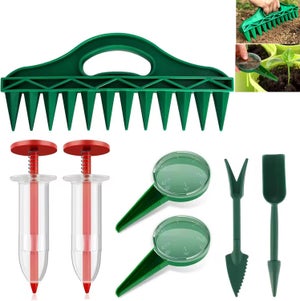 Sortie de Graines Réglable: Le distributeur de graines est équipé de cinq tailles de sorties de graines, vous permettant de contrôler précisément le débit et ainsi de maîtriser la densité de plantation, lorsque vous ne l'utilisez pas, réglez la sortie sur la position 0 pour éviter la chute des graines Nom du Produit: Semoir à Graines Manuel Caractéristiques du Produit: 1., Peut faire des trous uniformes et ameublir le sol efficacement 2., Cinq tailles de sorties de semences pour un semis précis et un contrôle de la densité de plantation 3., Utilisé pour creuser, forer, ameublir le sol, transplanter, très approprié pour la plantation de petites graines 4., Conception ergonomique de haute qualité, confortable à tenir Informations sur le Produit: 1., Matériau: PP 2., Couleur: Vert Contenu du Colis: -1 × Semoir à Graines -1 × Distributeur de Graines Services: Merci pour votre soutien, pour toute question ou suggestion concernant le produit, veuillez nous contacter par e-mail, nous vous répondrons sous 24 heures Excellente Qualité: Planteuse manuelle precision est fabriqué en matériau pp de haute qualité, moulage monobloc, structure solide et épaisse, pas facile à casser, à déformer ou à porter, surface lisse ne fait pas mal à la main, longue durée de vie AIDUCHO Sac De Plantation De Fraises, Gallon Fraise Avec 13 Trous Conception Ergonomique: Outils de semoir à main est équipé d'une poignée élargie et épaissie, avec une conception de courbe ergonomique, une prise en main confortable, une force uniforme sur la main, soulage la fatigue de la main et améliore l'expérience d'utilisation Pot de culture en plastique, 12 trous, boîte de pl... – Grandado Accessoire Potager Pratique Ensemble D'outils De Jardinage 10 Pièces En Acier Inoxydable Robuste Précision Plantation Distance Régulière Sac de culture suspendu pour plantation de tomates et fraises...
