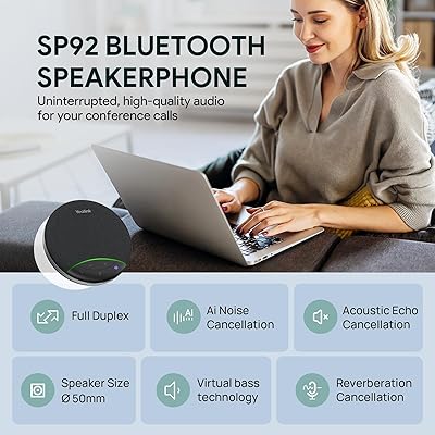 SP92 - Haut-parleur portable alimenté par l'IA pour les réunions Profitez d'une polyvalence optimale : l'enceinte de conférence SP92 est conçue pour les salles de conférence de 4 à 8 personnes. Enceinte Pc Yealink SP92 Enceinte Portable Conférence, Enceinte Bluetooth Salle Réunion Petit Groupe Suppression du bruit basée sur l'IA : la technologie full duplex SP92 garantit des conversations fluides, claires et ininterrompues. Passez au sans fil avec jusqu'à 20 heures d'autonomie de batterie en conversation ou en musique, jusqu'à 2,5 heures de temps de charge et 20 jours en veille, il est toujours prêt quand vous l'êtes. Connectivité fluide et collaboration fluide avec votre équipe tout au long de la journée. Récepteur Bluetooth pour voiture – Les 15 eilleurs produits coparés... Yealink - CP50 Haut-parleur Professionnel Pour Conférence Avec Qualité audio exceptionnelle : haut-parleur de 50 mm et portée de 4 m pour la prise de voix, technologie de basses virtuelles pour une qualité audio optimale, prise en charge de multiples modes de connexion, conception plug-and-play pour une connexion facile à votre ordinateur ou téléphone portable via USB, BT51-C ou Bluetooth. Portable et 20 heures d'autonomie en conversation : le haut-parleur Bluetooth Yealink SP92 ne pèse que 276 g, est facile à transporter et compact, que vous travailliez à la maison, au bureau ou en voyage d'affaires, aussi flexible que vous l'êtes. 1 micro avec suppression du bruit alimentée par l'IA, clarté sonore exceptionnelle, la suppression de l'écho acoustique supprime les retours et les échos gênants, garantissant une communication plus claire et plus naturelle.