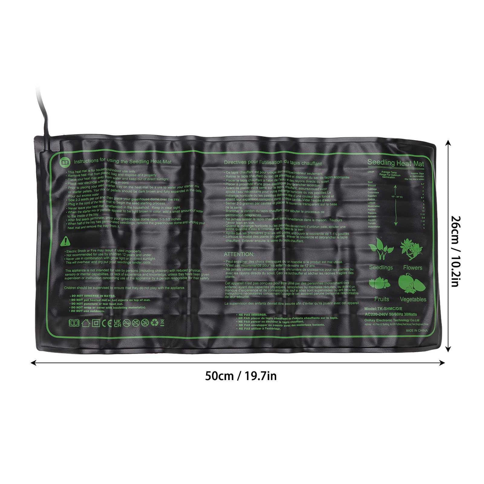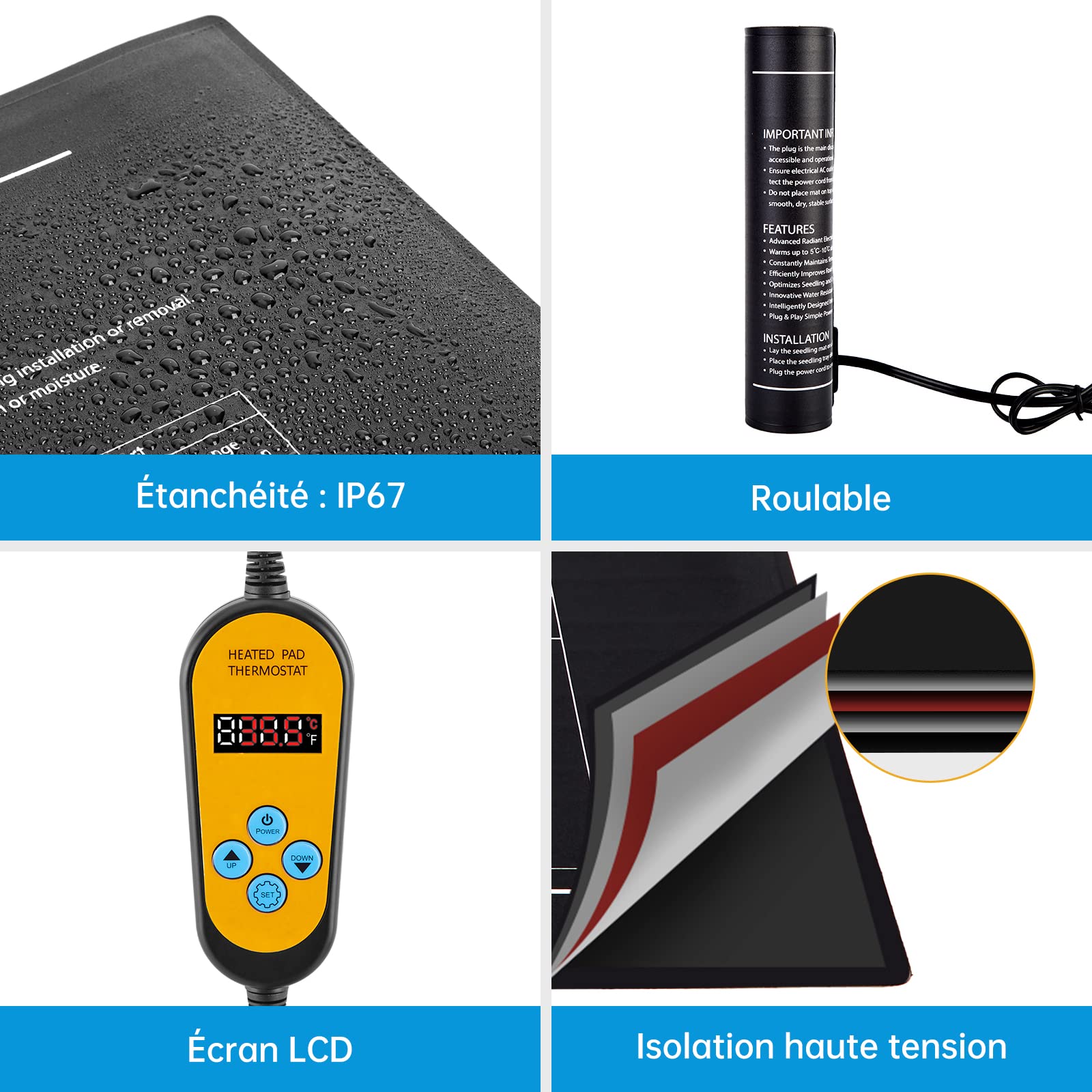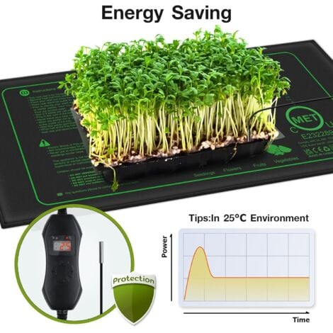 Selon la température ambiante ou le pot de plante, cela prend généralement 20 à 30 minutes. Branchez-le simplement sur une prise électrique et commencez à l'utiliser immédiatement, que ce soit pour le jardinage ou les soins aux animaux de compagnie. Le Coussin Chauffant Imperméable pour Serre favorise la croissance des racines des plantes, améliore le taux de réussite des semis et des boutures, et accélère la germination des graines. Attention : 1) Ne jamais immerger complètement le Tapis Chauffant pour Semis Germination dans l'eau. Que ce soit pour des plantes exigeantes en milieu frais, des reptiles, des amphibiens ou même la fabrication de bière - ce Coussin Chauffant Imperméable pour Serre polyvalent fournit une chaleur fiable. Tapis Chauffant Semis Avec Thermostat Lot De 2 Tapis Chauffants Pour Semis 21 W Pour Démarrer Les Semis Feuille Thermique Impermeable 25 Cm X 52 5 Cm Pour Germination Des Graines 95031395 Serre Pour Semis Germination & Croissance Racinaire Optimales : Notre Tapis Chauffant pour Plantes avec Thermostat pour semis réchauffe efficacement la zone racinaire de 20°C à 30°C au-dessus de la température ambiante. 52,5x25 cm / 20,75x10, 50W, 220V). Ne placez pas d'objets à haute température sur le tapis. Utilisation Polyvalente : Le Tapis Chauffant pour Plantes avec Thermostat pour semis est la solution parfaite pour les serres, les terrariums et les aquariums. Ils apprécient sa polyvalence, mentionnant qu'il est utile pour plusieurs utilisations, notamment pour une vitrine ou serre de plantes tropicales. Les clients apprécient également sa facilité d'utilisation et son rapport qualité-prix Le Tapis Chauffant pour Plantes avec Thermostat pour semis peut être utilisé rapidement et facilement n'importe où. La conduction thermique du coussin chauffant prend du temps. Le fil chauffant renforcé et la conception multicouche garantissent une distribution de chaleur uniforme et sûre sans points chauds - vos semences sont en sécurité. L'utilisation d'un thermostat permet de maintenir les plantes à une température appropriée, rendant le processus de plantation simple et réussi. Cette nappe chauffante est un système de chauffage électrique permettant de chauffer les racines de vos plants et contribuant à la germination de vos semis. Le tapis chauffant permet d'augmenter la chaleur du sol jusqu'à 35 °. Cela permet de favoriser la multiplication de vos graines et boutures YOSOO Tapis Chauffant pour Semis avec Thermostat Digital - Accélère la Adaptez la chaleur parfaitement aux besoins de vos plantes.