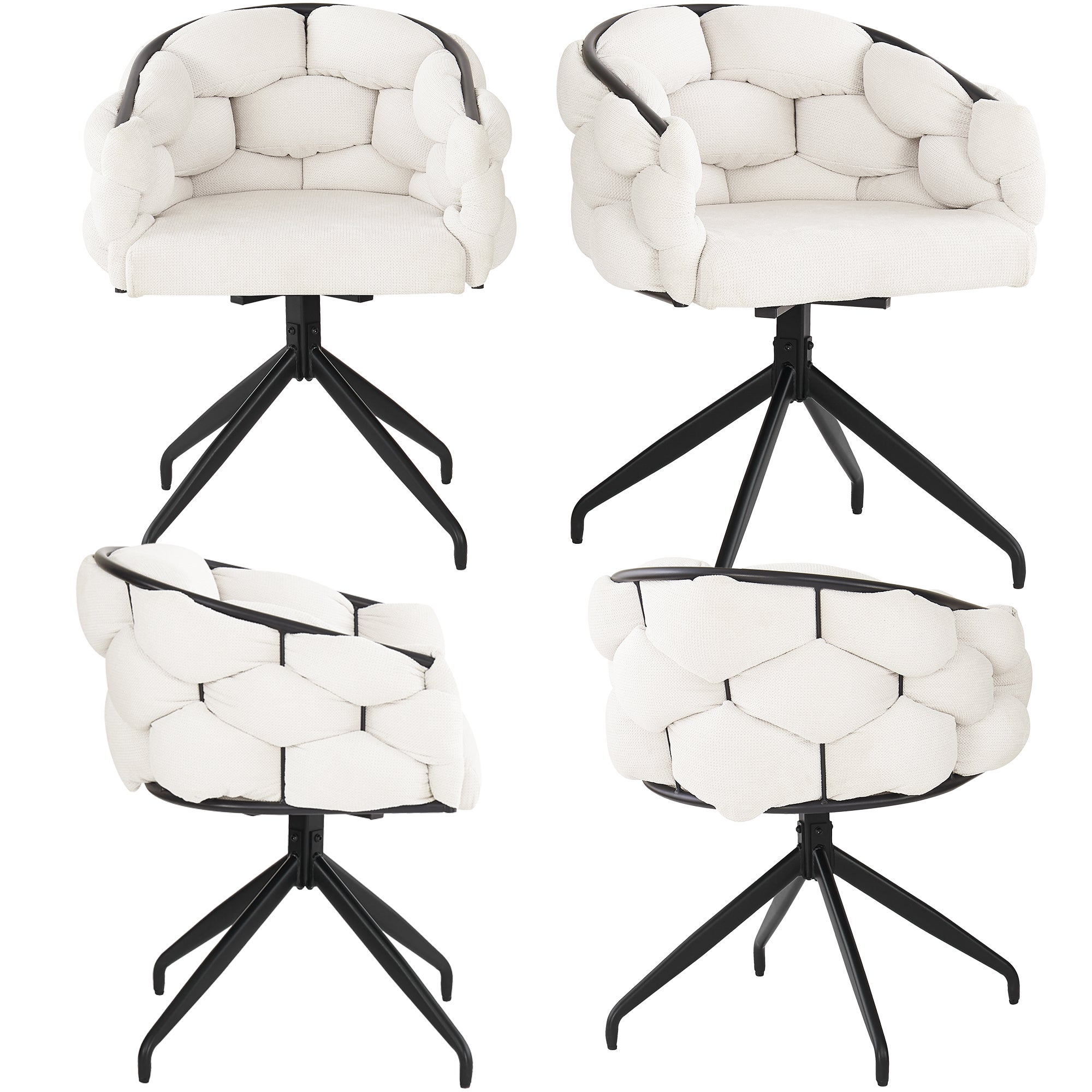 Il est très confortable pour discuter, prendre un repas en famille ou un moment décontracté. Tissu chenille 3D de luxe certifié : Le tissu chenille de cette fauteuil est certifié OEKO-TEX®, exempt de substances nocives, et présente une texture 3D douce et un éclat brillant UTILISATIONS POLYVALENTES: La chaises avec coussin pivotant a une forme parfaite pour s'adapter à n'importe quelle pièce de votre maison et peut être utilisée comme maison ou bureau, salon, salle à manger, chambre, salle d'étude, salle de réunion, école, salon etc. CONCEPTION ERGONOMIQUE: Le coussin doux de la chaise longue est fait de mousse élastique haute densité. Les pieds en métal avec pieds réglables empêchent les égratignures au sol et maintiennent l'équilibre. Chaises Avec Dossier Haut Et Accoudoirs Confortables Lot De 4 Chaises Salle à Manger,chaises Pivotante à 360°scandinave, Rembourrée En Velours,crème Lot De 4 Chaises Rembourrées Pivotantes 360 CHAISES REMBOURRÉES ÉLÉGANTES ET CONFORTABLES: Ces chaises de salle à manger ont un revêtement en tissu chenille élégant et confortable. Le dossier haut et les accoudoirs à la bonne hauteur assurent un soutien suffisant pour votre dos et vos coudes. Idéale pour les longues périodes assises, que ce soit pour manger, lire ou travailler, sans sacrifier le confort. La coque d'assise de forme ergonomique avec un large dossier assure un confort d'assise optimal. 4 Chaises salle à manger Pivotante Bouclé Beige Ils peuvent être utilisés comme chaise de salle à manger dans la salle à manger ou dans la cuisine; chaise de bureau dans la chambre ou le bureau ; Chaise rembourrée dans le séjour, le salon, la réceptionle, la chambre ou comme fauteuil de coin thé/lecture. Assise mi-ferme et confortable avec un soutien optimal : L'assise et le dossier sont rembourrés de mousse haute densité (niveau de fermeté 3/5) et d'un rembourrage en fibres souples, garantissant un confort ergonomique parfait, même pour de longues périodes de détente