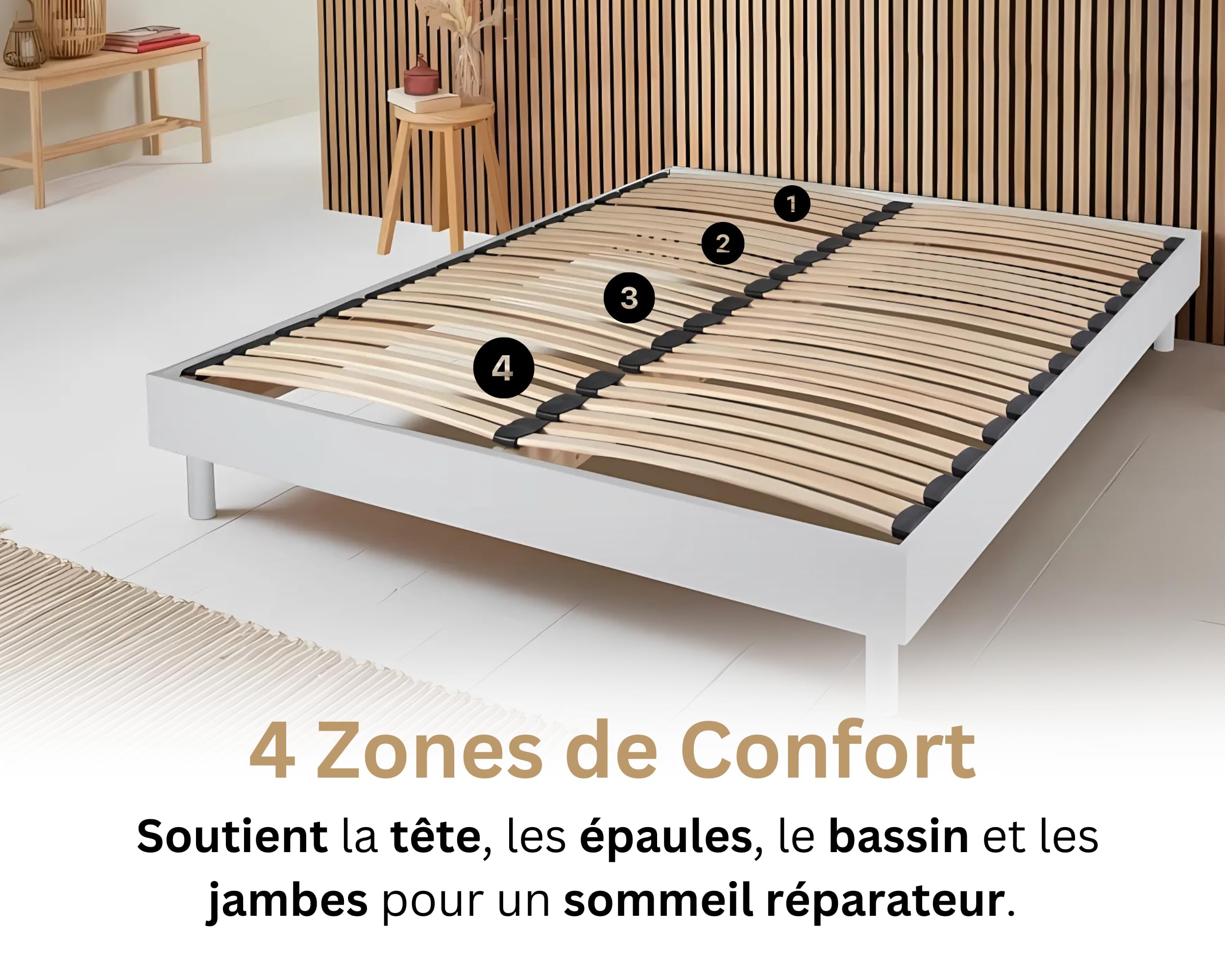Sommier En Kit 90x190 - Neokit 16 Lattes Bois - Chêne Clair - Soutien