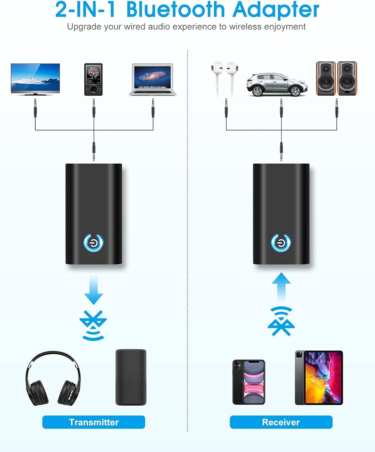 [Prise en charge de l'audio sans fil] Prise en charge des équipements audio avec entrée audio pour une réception sans fil transparente et, fournissant une solution audio pratique. Condition: Nouveau Type d'article: pour l'adaptateur Bluetooth Pour Bluetooth: 5., 0 Protocole de support: A2DP, AVRCP, Current de travail: 60mA Courant de travail: ﹤ 18MA Batterie intégrée: Polymer 600mah CHARGING COURTER: Batterie intégrée: Polymer 600MA 300mA durée de vie: ﹥ 8h pour la distance Bluetooth: ﹥ 10m (lieu ouvert) Méthode de charge: Modèque Micro USB 5V / 0,5A Mode de connexion de sortie: Interface stéréo de 3,5 mm Mode de connexion d'entrée: interface stéréo de 3,5 mm Compatable: pour un équipement Android, pour les phones mobiles du SYSTÈM avec interface d'entrée audio. [La qualité du son améliorée] présente l'annulation AEC et l'annulation du bruit ANC pour un son étonnant stéréo et une qualité sonore pure, élevant l'expérience d'écoute. Intercom Moto Adaptateur Bluetooth 5.0 Voiture - Récepteur Audio Avec Jack 3,5mm - Main Libre, Double Connexion | Pour Auto, Casque, Enceinte Transmetteur Bluetooth [Compatibilité large] compatible avec les formats audio doubles sans perte et prend en charge AUX OUT, ce qui le rend polyvalent pour divers besoins en équipement audio. Sans fil Bluetooth adaptateur USB émetteur fréquen... – Grandado Adaptateur Bluetooth Pour Pc Portable Asudaro Microphone Récepteur émetteur Bluetooth 5.1, Adaptateur Bluetooth 3 En 1, Lecteur Convertisseur Adaptateur Audio Sans Fil Mains Libres 3,5 Mm Adaptateur Bluetooth Pour Haut Parleur L’émetteur récepteur Bluetooth USB est la solution idéale pour équiper votre PC. Très simple à installer, il vous permet de profiter d’une connexion sans fil de qualité pour diffuser votre musique ou vos appels en toute liberté