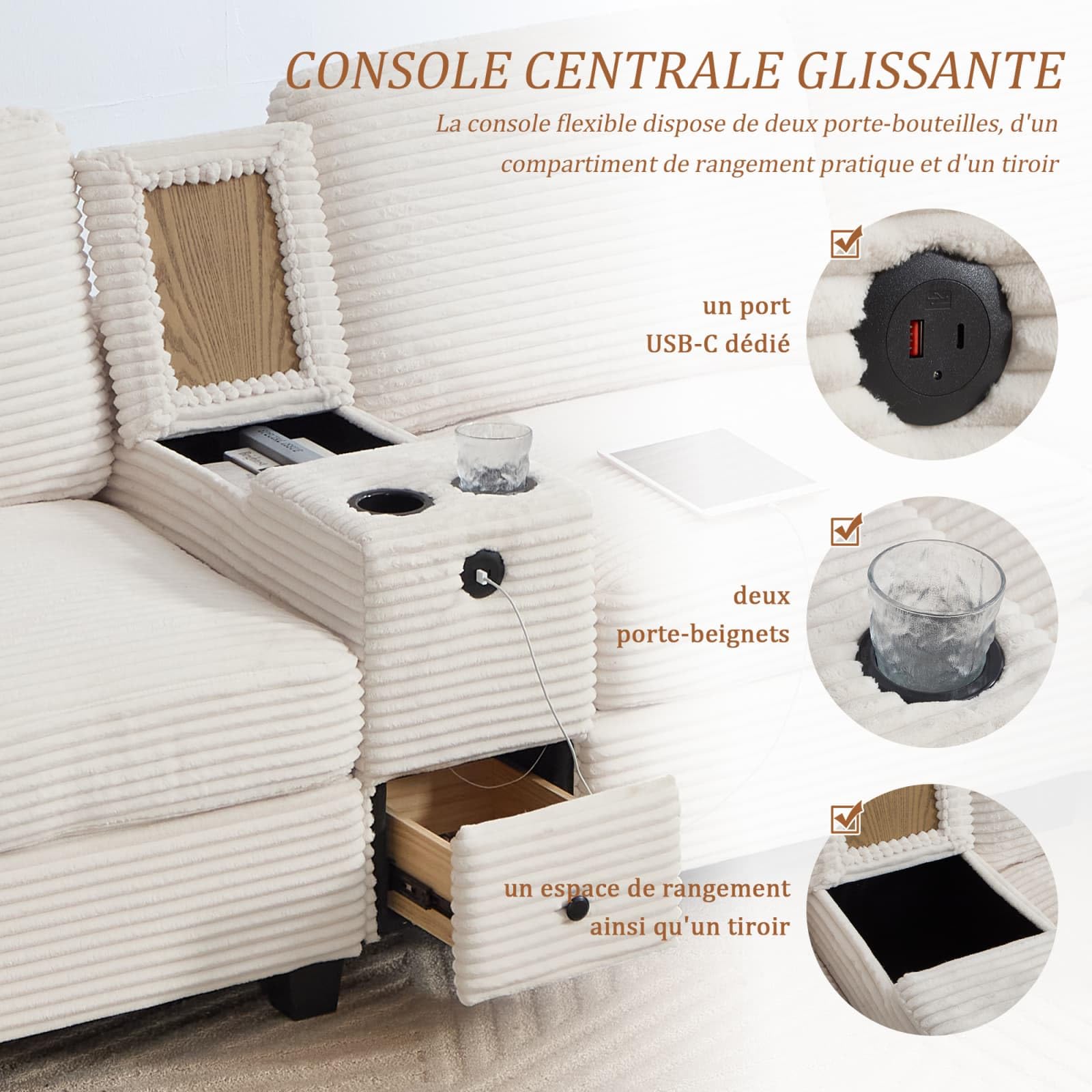 Les 4 coussins apportent un soutien supplémentaire pour le dos et les lombaires, renforçant le confort lors de longues périodes de détente Compartiment de rangement intégré sous la méridienne pour un salon toujours ordonné : Un grand espace de stockage accessible par soulevement du siège permet de ranger couvertures, oreillers ou jeux. Style d'assise:Assise avec plusieurs coussins Compartiment de rangement intégré sous la méridienne pour un salon toujours ordonné : Un grand espace de stockage accessible par soulevement du siège permet de ranger couvertures, oreillers ou jeux Revêtement en tissu chenille doux, résistant et agréable au toucher, avec coussins d’appoint inclus : Le velours chenille offre une sensation de moelleux immédiat tout en résistant bien à l’usure quotidienne. Hauteur du dossier – de l'assise au bord supérieur du dossier:42 cm Position des coussins d'assise amovibles:Non Il y a 5 jours · Ce canapé modulable contemporain de coloris kaki, revêtu de velours côtelé et garni de mousse, est conçu pour 4 personnes et parfait pour la pièce à vivre principale Sous la chaise longue se trouve un vaste espace de rangement permettant de ranger facilement couvertures et oreillers. Coussins d'assise amovibles :Non En raison de la lumière ou de l'écran, il peut y avoir de légères différences de couleur, ce qui est normal Hauteur de l'assise – du sol à l'assise:47 cm Canapé compact et multifonctionnel : conçu pour les espaces de vie contemporains, ce canapé s'intègre parfaitement dans n'importe quel salon ou salle de séjour. Coussins d'assise réversibles:Non, Coussins inclus:Oui Doté d'un mécanisme coulissant intégré, il se transforme rapidement en un lit spacieux, répondant parfaitement aux besoins des invités qui passent la nuit. Canapé d'angle convertible ALHAMBRA | Cocktail Scandinave Matériau des pieds:Plastique Ce canapé compact en forme de L allie intelligemment multifonctionnalité et design confortable, s'intégrant sans effort dans les salons contemporains. Doté d'un mécanisme coulissant intégré, il se transforme facilement en un lit spacieux. Hauteur des accoudoirs :55 cm Canapé Tissu Chenille Gris Foncé Canapé Convertible En L Espace Rangement Porte-gobelets Port Recharge Usb Tablette Daccoudoir Quatre Coussins Salon Chambre Amis Beige Canapé D'angle Dimensions de la chaise longue:102*46 cm Les deux accoudoirs sont équipés de compartiments intégrés, de porte-gobelets et de ports de recharge USB/Type-C, permettant de garder les objets essentiels à portée de main pour une vie domestique plus organisée et plus pratique., ., Spécifications: Matériau:Chenille Hauteur des pieds:5 cm