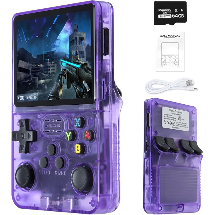 Console Portable Rétro Keyboy R36S Console De Jeu Rétro Portable Avec 128G Intégré, Plus De 21 000 Jeux Classiques, Système Linux Open Source, écran IPS De 3,5", Lecteur Vidéo Portable Console émulation Classique Violette Le boîtier violet transparent ajoute un attrait esthétique distinctif tout en vous permettant d'apprécier l'ingénierie interne. Console De Jeu Portable R36S Écran IPS De 3,5 Pouces Système Linux 11 Emulateur 64 Go Violet Transparent Le design ergonomique de la console, mesurant 16,5 cm x 10,5 cm x 1,77 cm, assure des sessions de jeu prolongées et confortables. Avertissement De Sûreté 1., Ne démontez pas ce produit si vous n'êtes pas un professionnel., 2., Ne pas placer dans un environnement très lumineux et humide pendant une longue période., 3., Si la batterie est bombée ou fuit, veuillez la remplacer immédiatement., 4., Ne vous adonnez pas aux jeux pendant une longue période., 5., Ne convient pas aux enfants de moins de 6 ans. Écran de haute qualité : l'écran IPS de 3,5 pouces offre des visuels nets et des couleurs vives pour une expérience de jeu immersive Design compact : mesurant 10,5 x 16,5 x 1,77 cm, cette console portable tient confortablement dans vos mains et vos poches Capacité de stockage : généreux stockage intégré de 128 Go offrant suffisamment d'espace pour les jeux, sauvegarde des fichiers et mises à jour du système Fonctionnant sur un système Linux open-source, cet appareil polyvalent offre une compatibilité étendue avec divers simulateurs de jeu. Parfaite pour les joueurs occasionnels et les amateurs de jeux rétro, cette console portable vous permet de transporter vos classiques préférés partout où vous allez. Équipé de boutons X, Y, A, B, d'un D-pad précis et de deux pads de contrôle, il offre une expérience de jeu authentique.