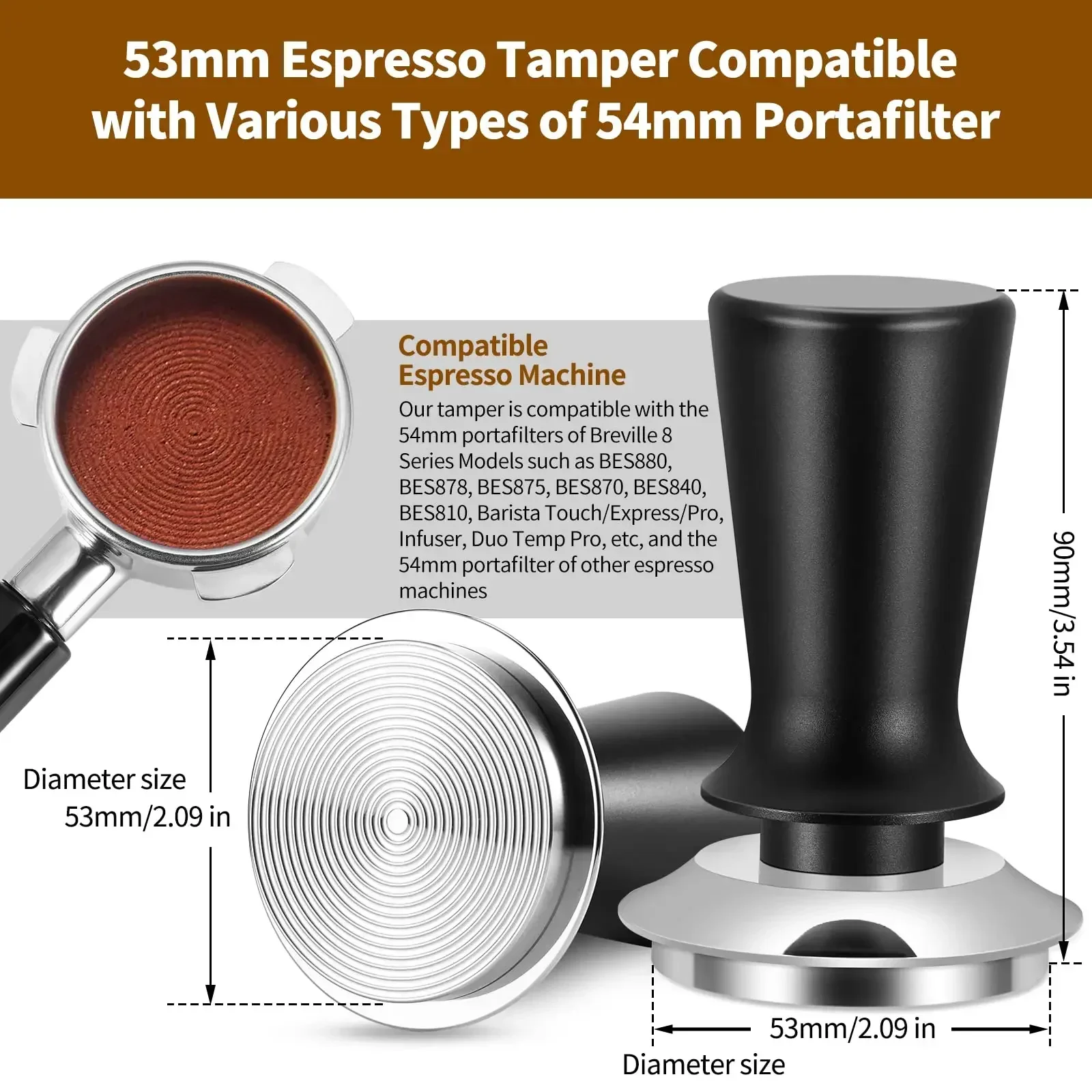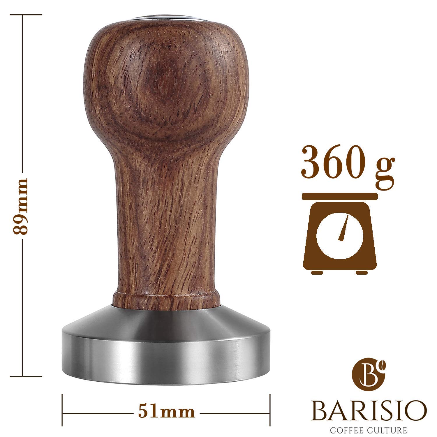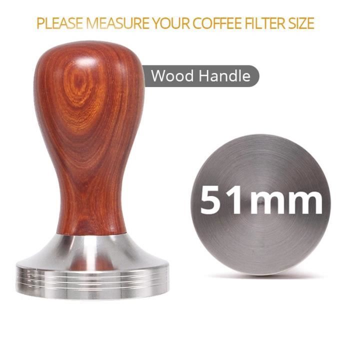 La poignée et la base sont amovibles pour un nettoyage facile. Attributs du produit : ● Couleur : Marron ● Matériau : acier inoxydable 304, bois de hêtre ● Poids du produit : 275 g / 9,7 oz ● Poids du colis : 340 g / 12 oz ● Taille du colis : 10 x 6,5 x 6,5 cm / 3,9 x 2,6 x 2,6 pouces Le forfait comprend : ● 1 x tamper à café ● 1 x tampon en silicone Le manche en bois de hêtre massif est ergonomique, confortable, lisse et durable. Accessoire Machine à Café Barista Qualité Alimentaire Tamper à Café - Nespresso - Acier Inoxydable - Outil Solide - Compatible DolceGusto Tamper Expresso Acier Inox 304 51mm Matériaux de haute qualité : le tamper à café est fabriqué en acier inoxydable de haute qualité, non toxique et inodore, antirouille et facile à nettoyer Compatibilité de plusieurs tailles] : tamper à café disponible en bases de 51 mm, 53 mm et 58 mm pour correspondre à une gamme de paniers porte-filtre, permettant des résultats de tassage sur diverses machines à expresso, des unités compactes aux équipements commerciaux HURRISE Tamper en acier inoxydable Tamper à Café en Acier Inoxydable Marteau à Poudre de Café