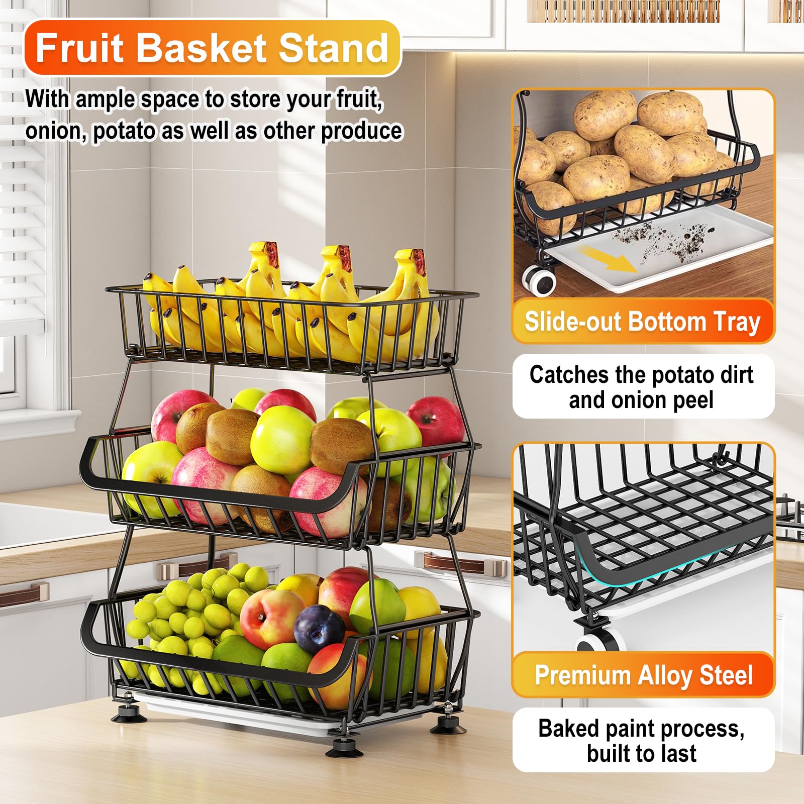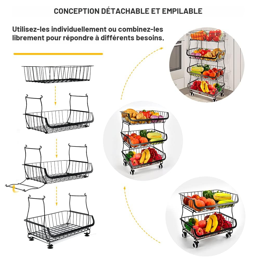 Panier à linge à roulettes en fer • Le Comptoir du Panier Idéal sous les étagères ou sur les comptoirs de cuisine. Panier Chariot 1Easylife Panier à Fruits Et Légumes, Panier Empilable En Fil Métallique à 3 Niveaux Avec Roulettes, étagère Utilitaire Pour Cuisine, Garde-manger, Garage, Avec 2 Paniers Gratuits (3 Niveaux Range Legumes Cuisine Grand chariot de rangement avec grande capacité: Finis les encombrements dans votre garde-manger ! Dimensions : 40 cm (L) x 30,5 cm (l) x 58 cm (H). Conçu pour durer sans se déformer. KAISHENGDAA Chariot de rangement de cuisine, chariot à collation... Chariot de Stockage de Fruits et légumes Étagères de sol à plusieurs niveaux for cuisine et salon, rangement amovible, gain de place, organisateur avec roulettes Corbeille de Fruits de Cuisine ( Color Options de placement flexibles: Utilisez-le avec ses roulettes bloquables en chariot mobile, ou avec ses pieds antidérapants pour une stabilité optimale sur un plan de travail. Structure robuste et anti-rouille: Fabriqué en acier résistant avec revêtement anti-corrosion, il supporte même les charges lourdes. Tout reste visible et à portée de main.