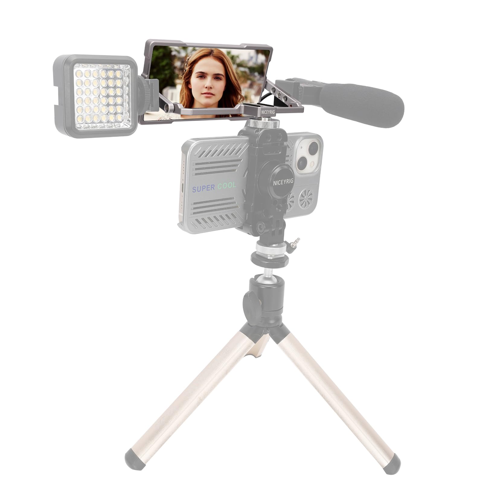 Configuration en mode paysage et portrait : peut facilement atteindre les deux modes de tournage avec un support de téléphone rotatif sur trépied (recommandé Niceyrig 515). NICEYRIG Miroir universel pliable pour smartphone avec écran rabattable - Compatible avec la plupart des téléphones intelligents, clips de téléphone, appareils photo reflex numériques et microslr Élargissez la capacité de la caméra arrière : le support de miroir à selfie est adapté pour les vlogueurs, les blogueurs, les vidéastes et les photographes qui veulent une performance maximale sur les réseaux sociaux tels que YouTube, Facebook, TikTok, ou vous voulez simplement des vidéos de bonne qualité, des photos selfie qui passent par l'appareil photo arrière le plus brillant de votre téléphone. Grâce à un rapport d'aspect décent selon la taille de l'iPhone, le support de miroir à selfie Vlog offre toujours une bonne configuration d'affichage dans la direction verticale. Remarque : le produit 534 a un effet miroir uniquement et ne dispose pas de fonction d'enregistrement vidéo. En outre, pas besoin d'accessoires supplémentaires, il vous permet de le fixer directement à l'appareil photo reflex numérique, tels que Sony A6000, A6300, A7II, A7III. Miroir rotatif à 360 degrés : permet d'ajuster le miroir de haut en bas de manière illimitée pour obtenir un angle de réflexion parfait tout en prenant des selfies. Buy NICEYRIG Plus Smartphone Selfie Mirror Monitor Kit With Tripod Mount Phone Clip Applicable For Iphone 14 13 12 11 Pro Max Horizontal Vertical Fabriqué en alliage d'aluminium de qualité supérieure et acrylique, le support de miroir est robuste et durable. Convient à la plupart des téléphones portables de 4,7 à 6,7 pouces sur le marché tels que les téléphones iOS et Android, vous donnant une vue claire et directe de la caméra arrière. Structure solide, conçue pour durer longtemps : livrée avec un support de griffe offrant une installation rapide sur le support de téléphone ou l'appareil photo, et des coussinets en caoutchouc sur les points de contact pour éviter les rayures du miroir. Vendu par niceyrig Official Store, service logistique de niceyrig Official Store Retour Ecran Iphone NICEYRIG Miroir Pliable Pour Smartphone Avec écran Rabattable Pour Vlogging En Direct, Compatible Avec La Plupart Des Téléphones IOS Et Android De 4,7 à 6,7 (Version Plus Retour écran Téléphone Vous permet de faire pivoter le miroir vers le haut et vers le bas à 360 degrés, mais pas facile à desserrer, vous offrant un angle de vue parfait tout en prenant une photo selfie, un tournage, un flux en direct.