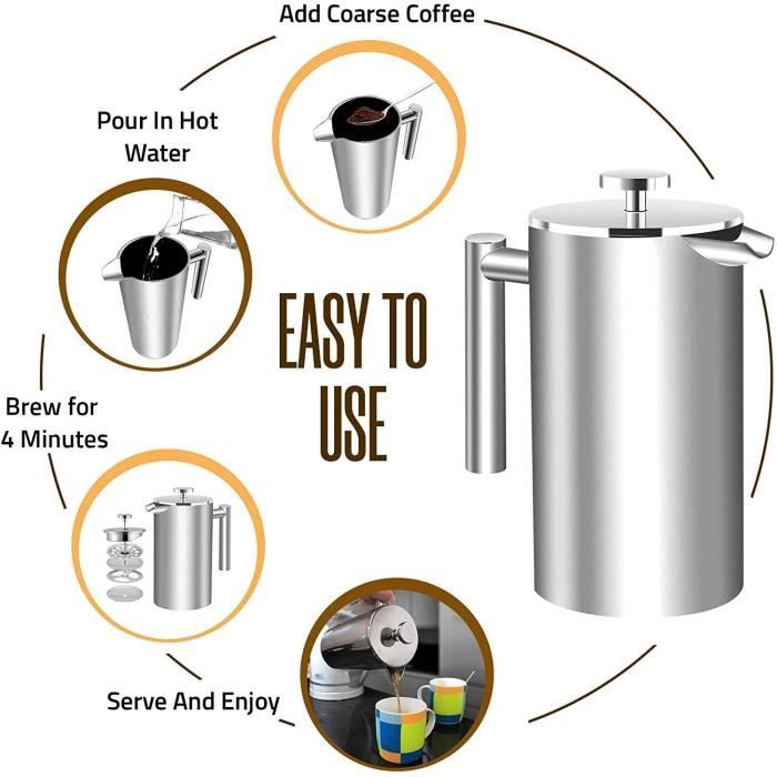 La cafetière à piston XINGYUEXUAN en acier inoxydable combine un design moderne et une fonctionnalité de qualité supérieure. Cafetière piston acier : le top 20 des eilleurs de 2024 | eilleurs.info Grâce à l'isolation à double paroi, votre café reste chaud plus longtemps que les modèles en verre traditionnels, parfait pour les rituels détendus du matin ou les soirées confortables. Contenu de l'emballage : 1 cafetière à piston en acier inoxydable. Passe au lave-vaisselle - Toutes les pièces (sauf la poignée) peuvent être nettoyées en toute sécurité au lave-vaisselle - Hygiénique et gain de temps. Cafetière 350ml Lave-vaisselle MaxMiuly Cafetière à Piston 1.5L INOX Isotherme,Presse Française Cafetière Piston Isotherme Pourquoi cette cafetière ? Acier inoxydable de qualité supérieure : non corrosif, inodore et plus durable que le verre. Acier inoxydable de qualité supérieure : cafetière à piston en acier inoxydable 304 pour une durabilité extrême et un look élégant. Tailles pratiques – Disponible en 300 ml/600 ml/1000 ml – Parfait pour les buveurs solo, les couples ou les invités. Facile à nettoyer : construction démontable et composants lavables au lave-vaisselle. Machine Café Voyage Cafetière à Piston Handpresso 0,6L - Acier Idéal pour : Les amateurs de café qui accordent de l'importance à la qualité et à la durabilité. Cafetiere A Piston 350 Ml - 3 Tasses French Press, Filtre En Acier...