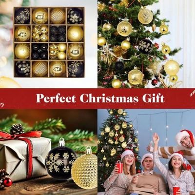 Qqmora Boule de Noël Boules de noël en plastique Transparent, 5 pièces Lot Boules Plastique 3 Cm 6 Cm Lot De 44 Décorations De Noël En Plastique, Boules De Noël Incassables Lot Boules Noël Noires Dorées Plastique 44 Pièces Utilisation polyvalente : cet ensemble de décorations de Noël délicates en noir et doré convient non seulement pour les occasions festives, mais aussi pour la décoration quotidienne dans les chambres et les salons. Colorées : ces boules de Noël noires et dorées Que ce soit suspendues au sapin de Noël ou comme décoration de fenêtre, les décorations de Noël noires et dorées créent une atmosphère de Noël chaleureuse. Différents styles : les boules de Noël sont composées de différents éléments de Noël tels que des flocons de neige cristallisés, des sapins lumineux et une inscription confortable « Joyeux Noël ». Transformez votre sapin et votre intérieur grâce à ce lot de 44 boules de Noël aux couleurs chic noir et doré, parfait pour une ambiance festive et raffinée Les différents éléments de Noël se complètent mutuellement et créent une atmosphère de Noël chaleureuse. Utilisation polyvalente : cet ensemble de décorations de Noël délicates en noir et doré convient non seulement pour les occasions festives, mais aussi pour la décoration quotidienne dans les chambres et les salons Vous n'avez pas à vous soucier de les casser, même si vous les laissez tomber d'un endroit élevé. Les deux tailles des décorations de Noël rendent la décoration non seulement intéressante, mais peuvent également être adaptées à vos besoins.