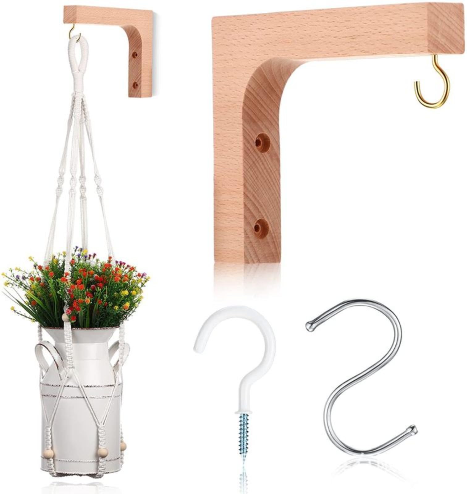 Lot de 2 : vous recevrez deux supports muraux en un seul ensemble pour accrocher vos plantes et décorations de manière optimale. CUNQN Support mural pour plantes d'intérieur à 3 crochets à suspendre Lot de 2 suspensions murales en Bois pour Fleurs - Crochets muraux à Suspendre - Support pour Plantes, Lanterne, Crochet Mural, Support de Suspension pour Fleurs, planteur, Suspendu Méthode d'installation : vous devez percer deux trous dans le mur et compter sur des vis pour les fixer directement au mur. Liste : Y compris les vis d'installation, facile à installer Le paquet de suspension pour plantes en macramé comprend 2 crochets et 4 vis d'expansion. Il suffit de percer deux trous dans le mur et d'insérer la fiche dans le mur Les crochets sont livrés avec des vis pour les applications. Quantité: Un ensemble de deuxDimensions : 23,3 x 22 x 2,4 cm. Crochets Et Suspensions Pour Plantes Support Suspension L Forme Supports Muraux Morkite En Bois - Lot De 2, Pour Plantes, Lanternes, Décoration Extérieure Accessoire Décoration Jardin Porte Plante Mural