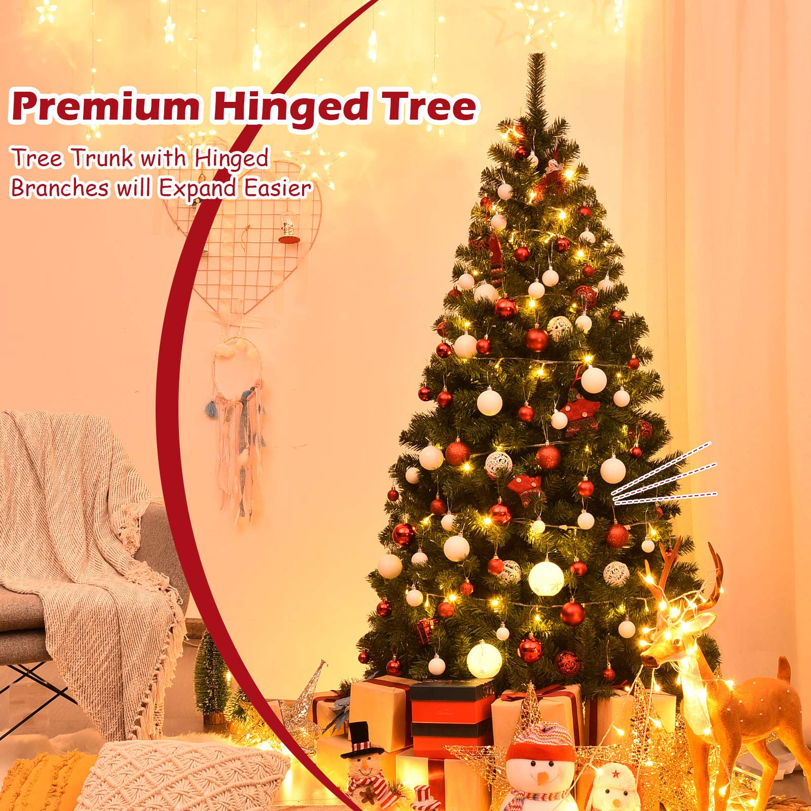 Divisé en 5 sections, il est doté d'une base métallique en croix avec des vis préinstallées pour une stabilité maximale, renforcée par des plaques d'ancrage et des boulons d'expansion, parfaite pour une utilisation en extérieur. Sapin Avec Lumières LED Sapin De Noël Artificiel,Arbre De Noël,Ornement De Bureau,Joyeux Noël,Décorations Pour La Maison Sapin Noel Artificiel Ce qui rend nos produits différents : Sapin de Noël de 360 cm, robuste et adapté à une utilisation en extérieur Fabriqué en PVC 100 %, ignifuge, résistant à la décoloration Installation facile grâce à des connecteurs rapides à 360° et des branches flexibles 2536 branches denses et 1030 lumières LED blanches chaudes Divisé en 5 sections et base métallique stable avec vis Idéal pour les halls d'entrée, les salons et les hôtels, ambiance festive majestueuse Informations détaillées sur le produit : Couleur : Vert Matériau : PVC, Métal Taille totale : 130 x 360 cm (diamètre x hauteur) Diamètre de la base métallique : 115 cm Nombre de pointes de branches : 2536 Nombre de lumières LED : 1030 Nombre de sections : 5 Longueur du câble : 248 cm Poids net : 25 kg LIVRAISON: 1 x Sapin de Noël 8 x Vis à expansion 2 x Paires de gants 1 x Manuel d'instructions La douce lueur crée une atmosphère festive chaleureuse et paisible, mettant vraiment en valeur vos décorations. 4 plaques d'ancrage et 8 boulons d'expansion offrent une stabilité supplémentaire, particulièrement adaptée à une utilisation en extérieur. ZJCHAO Demi sapin de Noël artificiel avec support Noir 120 cm PVC CONCEPTION ROBUSTE : cet arbre de Noël artificiel de 360 cm de haut est conçu pour offrir une grande durabilité et convient aussi bien à une utilisation en intérieur qu'en extérieur. CONCEPTION SECTIONNELLE : cet arbre de Noël est divisé en 5 sections pour faciliter le montage et le rangement. Une base métallique en forme de croix avec des vis préinstallées améliore la stabilité sans nécessiter d'alignements complexes. Fabriqué à partir de PVC 100 % neuf, le feuillage présente des propriétés ignifuges et résistantes à la décoloration, ce qui garantit l'attrait visuel et la sécurité de l'arbre à long terme. UN CENTRE D'ATTRAIT : D'une hauteur de 360 centimètres, cet arbre décoratif attire l'attention, qu'il soit placé dans les halls d'entrée d'entreprises, les salons domestiques ou les halls d'hôtel animés. EXPÉRIENCE VISUELLE SOMPTUEUSE : Avec 2536 branches densément peuplées et 1030 lumières LED blanches chaudes, il insuffle à votre espace festif une riche ambiance de Noël. Son design majestueux complète toute occasion festive, amplifiant l'esprit de fête.
