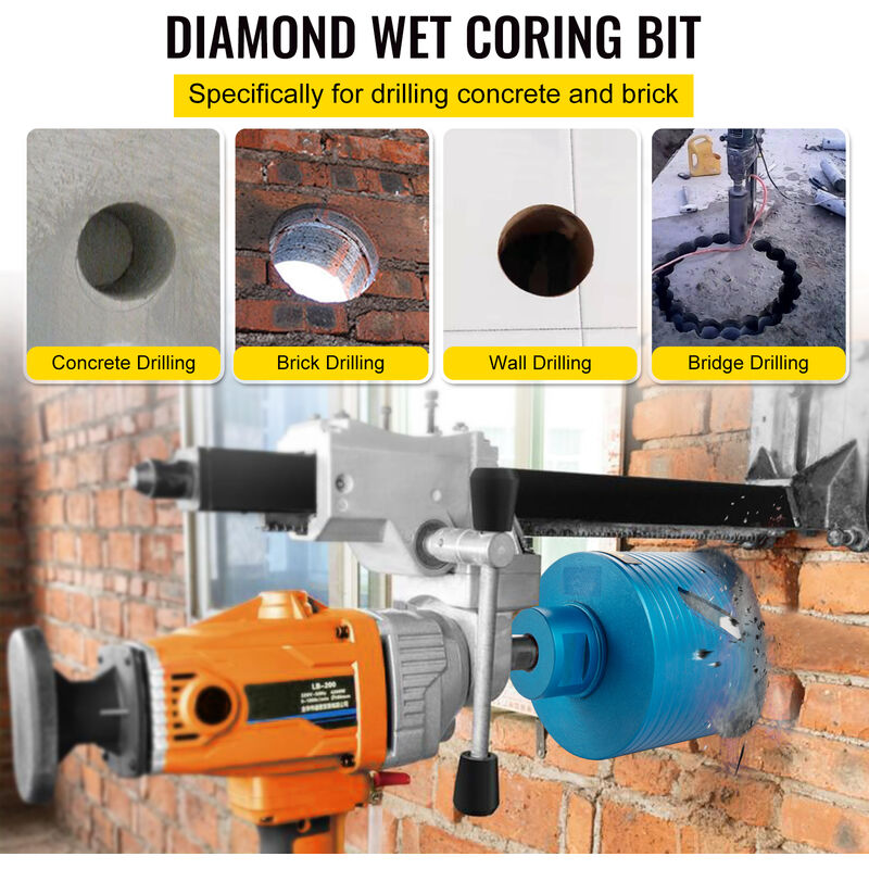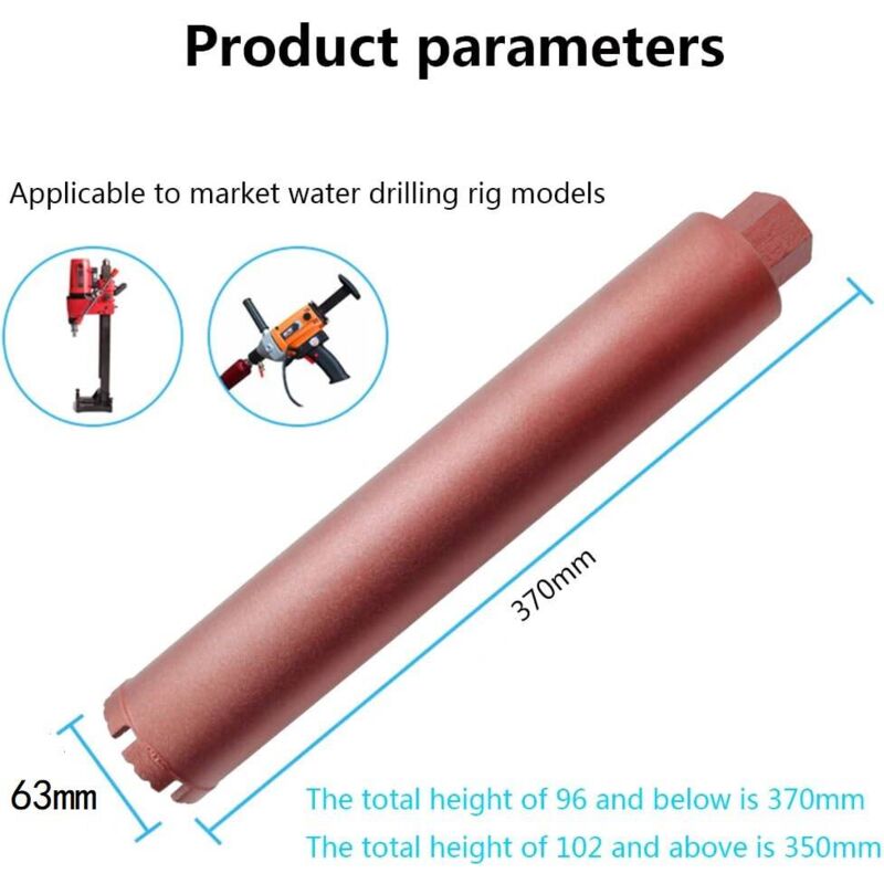 Type de dents : dents plates, grandes dents murales , Spécification : M22 Couronne diamant pour le carottage de beton, beton armé, granit. Retrouvez un large choix de cloche diamant pour carotteuse au meilleur prix Dimensions du produit (diamètre x hauteur) : 6,3 x 45 cm. Design bien pensé : il dispose d'un profil de dent plat pour une utilisation plus rapide, une sensation plus légère, une perceuse plus résistante à l'abrasion et une profondeur de perçage d'environ 16,14 pouces pour répondre à vos besoins de travail Après réception du produit, vous pouvez l'installer directement dans la perceuse à carotter (doit être acheté séparément) et l'utiliser. Foret Diamant 63 Mm Béton Couronne De Forage Diamantée Avec Segment Turbo, 68 Mm Et Adaptateur Foret Diamant 63mm Dimensions de l'emballage : 46 x 7 x 7 cm., Poids brut : 1,58 kg. Forage humide pratique : notre conception vous permet d'utiliser de l'eau pour supprimer la poussière et refroidir la perceuse, ce qui non seulement améliore l'efficacité de fonctionnement, mais prolonge également considérablement la durée de vie de la perceuse. Choix pratique : cet appareil a été soigneusement conçu pour être à la fois compact et léger. Veuillez noter que ce produit ne contient pas de machine à dénoyauter., 2., Les forets d'un diamètre supérieur à 63 mm ne sont pas recommandés pour une utilisation avec des marteaux électriques ou des perceuses à percussion (non incluses)., 3., Veuillez prendre des précautions de sécurité avant d'utiliser le produit., 4., Les mesures étant prises à la main, les tailles indiquées peuvent varier de 1 à 3 cm. Couronne de forage diamantée - Emmanchement hexagonal et foret de L'excellente qualité des matériaux utilisés, associée à la finition exquise, réduit considérablement les risques d'usure, de rouille et de déformation. Couronne Diamant pour Carotteuse Diamètre VEVOR 63,5 mm Profondeur 241...