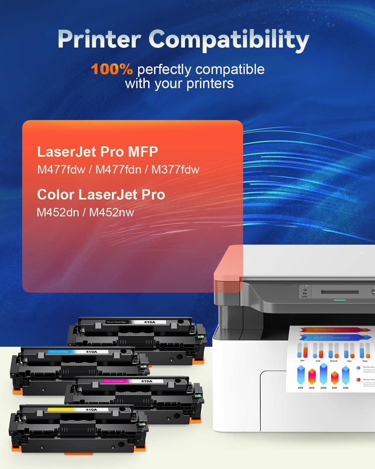 TRUE IMAGE - Cartucho de tóner Compatible con HP 410X 410A para Usar 410A Noir Cyan Magenta Jaune Inkalfa 410X 410A CF410X Kopatibel Für HP 410X 410A CF410A Ultipack Color Laserjet Pro FP Cartouche Hp 300 Noir Et Couleur Qualité supérieure : les cartouches de toner Skydo 410A sont équipées de la dernière version des puces compatibles et ont été testées à plusieurs reprises pour garantir une installation facile, une identification rapide et une bonne compatibilité. Achetez la cartouche de toner Skydo 410A spécialement conçue pour les imprimantes Color LaserJet Pro. Avec jusqu'à 2 300 pages noires et 2 300 pages en couleur à 5 % de couverture A4, c'est un choix fiable et efficace. Skydo Cartouche de toner 410A compatible avec 410 X 410 A CF410A en remplacement de Color Laserjet Pro MFP M477fdw/M477fdn/M377fdw Color Laserjet Pro M452dn/M452nw (noir, cyan, magenta, jaune Rendement de page : jusqu'à 2 300 pages par toner noir 410A CF410A, 2 300 pages par 410A CF411A/cyan CF412A/jaune CF413A/magenta (couverture de feuille A4 de 5 %). HP 410A Noir, toner compatible CF410A (2300 pages) pour imprimantes HP Contenu de l'emballage : 1 toner noir 410A CF410A, 1 toner cyan 410A CF411A, 1 toner jaune 410A CF412A, 1 toner magenta 410A CF413A (avec puces). Strictement testée, elle garantit une excellente qualité d'impression.