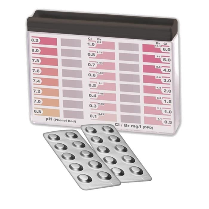 MediMuc fournit toujours une production actuelle. Pour les remarques concernant la MHD et les instructions (français non garanti), veuillez consulter les images (français non Remarque : Ne pas utiliser le test après 30 secondes car la couleur devient plus sombre et le résultat du test devient imprécis. Par conséquent, ils conviennent à tous les testeurs de piscine manuels ou appareils de test d'eau disponibles sur le marché. Vous pouvez le voir à partir du police verte sur le blister de la tablette Rapid Comprimés pour testeur de secouage avec correspondance de couleur. (Phenol Red) Valeur de pH idéale 7,0 à 7,6 (DPD N°1) Valeur de chlore idéale : 1,0 à 3,0 mg/l (DPD N°1) Valeur de brome idéale : 1-3 mg/l (DPD N°3). Replacez le couvercle et secouez vigoureusement le testeur d'eau jusqu'à ce que les pastilles soient complètement dissoutes. Jardin - Découvrez notre offre 500 comprimés de test Premium Rapid DPD1 pour piscines et tests généraux de l'eau pour déterminer les valeurs d'eau : chlore lib193 Ne convient pas pour les photomètres. Pour mesurer précisément 10 ml, le testeur est fermé avant l'ajout des comprimés. (DPD N°4) - Oxygène actif idéal : 5 à 8 mg/l. Le chlore lié ne peut pas être mesuré. Méthode précise pour déterminer la valeur de chlore libre dans la piscine et le jacuzzi Comparez la couleur de l'eau avec les couleurs de l'échelle de valeur et lisez le résultat. Les pastilles sont à dissolution rapide, elles sont donc adaptées à tous les testeurs manuels ou testeurs d'eau du marché. Test Oxygene Actif PoolLab® 500 Pastilles De Test Pour Photomètre Pour Mesurer Le Chlore Libre Et Le PH 250 X DPD1 Et 250 X Phenol Red Convient également Pour D'autres Photomètres Portatifs Les pastilles ne conviennent pas à la consommation. Tablettes de test MediMuc Premium Rapid pour piscines, jacuzzis et tests d'eau généraux pour déterminer les valeurs de l'eau. Contenu de la livraison : 500 pastilles de test DPD N°1 pour piscine Le chlore lié ne doit pas dépasser 0,2 mg/l. Testeur Manuel Compatibilité Oxygene Actif Pour Piscine Lot De 500 Comprimés De Test Rapid Premium 250 X DPD4 Et 250 X Phénol Controle Ph Et Chlore Piscine Tablettes Chlore Libre Piscine Tablettes de test MediMuc Premium Rapid pour piscines et tests d'eau généraux pour déterminer les valeurs de l'eau. Pour mesurer exactement 10 ml, le testeur est fermé avant l'ajout des comprimés. Si la teneur en chlore totale est soustrectée par la valeur du chlore libre, on obtient la valeur du chlore lié.