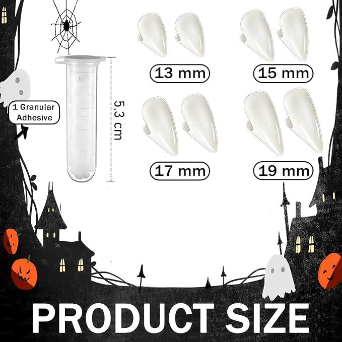 Attrape-dents personnalisés en 4 tailles : 4 tailles de prothèses dentaires de vampire dans ce jeu de fausses dents horreur, 13 mm, 15 mm, 17 mm, 19 mm, répondent à vos différents besoins de cosplay. Accessoire Déguisement Vampire Loup-garou Lot De 4 Paires De Dents De Vampire Rétractables Pour Halloween - Pas D Dent Vampire Enfant Description du produit Description du produit : Remarque : gel non inclus, veuillez l'acheter vous-même. Bon emballage : chaque paire de dents de vampire est emballée dans une petite boîte transparente, il suffit de ranger les fausses dents pour les fêtes d'Halloween et de rendre les prothèses dentaires de vampire réutilisables pendant de nombreuses fois. Remarque : Gel de résine thermoplastique non inclus., ◆ 【Cosplay de dents largement utilisé】Les dents de vampire conviennent à tout cosplay, accessoires de fête unisexe d'Halloween, utilisés comme vampires, loups-garous, zombies et accessoires de costume de cosplay. Appuyez ensuite sur la fausse dent sur vos propres dents pendant un certain temps (le gel de résine thermoplastique très rapidement, de sorte que vous devez la manipuler rapidement). Dents Adhésives Réalistes Dents Vampire Halloween 4 Paires Dimensions : environ 13 mm, 15 mm, 17 mm, 19 mm. Remarque : Gel de résine thermoplastique non inclus, veuillez l'acheter vous-même., ◆ Minifinker Cosplay de vampire pour Halloween - Dents de vampire... (Remarque : vous devez acheter la colle séparément). Nombre : 4 paires de dents de vampire. Vous permet de montrer vos dents de vampire à vos amis à tout moment et n'importe où. Il ne cause aucun dommage et est facile à utiliser avec la forme de la bouche de la plupart des gens. À utiliser sous la surveillance d'un adulte de moins de 6 ans Avertissement De Sûreté Pas d'avertissement