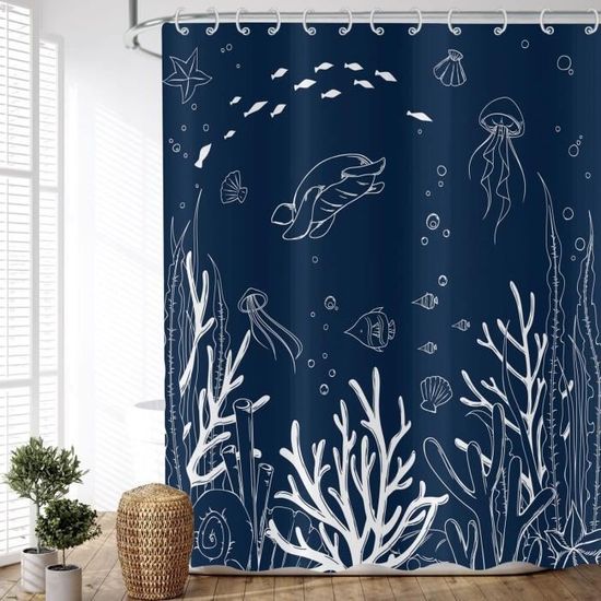 Rideau Imperméable Anti-moisissure OCEUMACO Rideau De Douche Motif Dauphin Sous Mer Bleu Anti Moisissure Décoration Douche Thème Mer Il offre intimité et effets décoratifs. Rideau de douche animaux marins Tissu en polyester : Notre rideau de douche est fabriqué en tissu polyester de haute qualité, qui est hydrofuge, doux, respirant, résistant à la décoloration et de qualité hôtelière. Vous pouvez les laver en machine ou simplement les essuyer régulièrement avec un chiffon doux ou une éponge. En même temps,gardez la salle de bain bien ventilée. Rideau Occultant,Paysage De Dauphins sous-Marins 3D Isolation Thermique D'une texture ferme mais douce et d'une gamme de couleurs vibrantes, le rideau est hydrofuge, ce qui le laisse sec en quelques minutes après la douche et aide à maintenir sec le sol, la baignoire, la douche, la salle d'eau et la zone entourant la baignoire. Imperméable et à séchage rapide : Le rideau de douche est fabriqué à partir de matériaux imperméables qui repoussent efficacement l'eau et résistent à l'humidité, ce qui permet de garder le sol de votre salle de bain sec et d'éviter les dégâts des eaux. Instructions de nettoyage et d'entretien : Le rideau de douche est lavable en machine. Il est donc capable de résister aux environnements difficiles et humides.