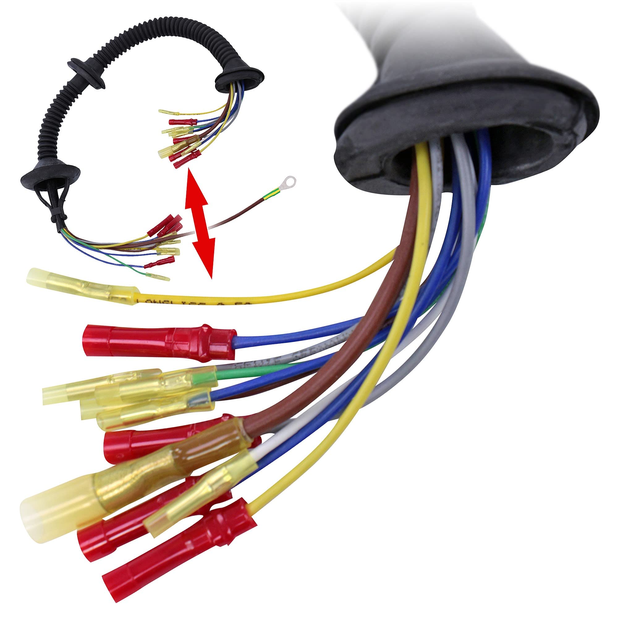 COMPATIBLE AVEC:BMW 3 (E46), BMW 3 Coupe (E46)NUMÉROS OE (à titre comparatif uniquement):61116943313, 61116943602, 61116950735, 61116951103, 61126919968, 61126928425, 61126930613, 61126934343, 61126934802, 61126939410, 61126939478, 61128387186 Pièces détachées de Faisceau électrique de hayon et coffre pas cher - Partauto INFORMATION TECHNIQUE:Emplacement: Hayon du véhiculeLongueur de câble: 650Nombre de conduites: 13pièces supplémentaire / information supplémentaire: avec machonREMARQUE:Ce kit de réparation est destiné à remplacer l'ancien faisceau de câbles plié ou déchiré. [br]Ceci est décrit en détail dans les instructions de montage. [br]Veuillez IMPÉRATIVEMENT consulter les instructions de montage. LIVRAISON - ; 1x kit de réparation du faisceau de câbles du hayon arrière REMARQUES - Nombre de câbles : 11[br] Longueur totale : environ 65 cm ; ATTENTION ! Kit de réparation faisceau du coffre / hayon Le kit de réparation pour le faisceau du coffre ou du hayon est un ensemble de composants électriques et de connecteurs destiné à restaurer la fonctionnalité des circuits électriques situés dans la partie arrière de votre véhicule. Ces faisceaux sont essentiels car ils assurent la connexion électrique entre le corps de la voiture et le... Remplacement de haute qualité avec des câbles en silicone qui ont une durée de vie plus longue que le kit de câbles de série ! Kit de réparation de câble, hayon de coffre FEBI BILSTEIN 107059 au Remplacement Faisceau Câbles Plié Déchiré KIT DE RÉPARATION DE FAISCEAU DE CÂBLES HAYON GAUCHE BMW E61 + NRS SUR CÂBLE (1PC) Europe BV Faisceau Câbles Hayon BMW E46 ATTENTION - Veuillez vérifier sur la base des données de votre véhicule si cette pièce de rechange est compatible avec votre véhicule et tenez compte, le cas échéant, des restrictions/critères existants. RESTRICTIONS:Nombre de câbles : 11 Longueur totale : environ 65 cmATTENTION! Veuillez IMPÉRATIVEMENT consulter les instructions de montage. Dans cette version améliorée, 5 câbles, lignes de masse sur le faisceau de câbles de série, sont transférés sur un seul câble afin d'éviter une nouvelle rupture de câble. Ceci est décrit en détail dans les instructions de montage.