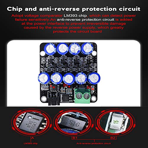 Caractéristiques : Fonction principale : permet de mettre hors tension la fonction d'impression de reprise Dimensions extérieures : environ 52,53 x 50 mm. Le module est petit et facile à installer. Bigtreetech Direct BTT UPS 24V V1.0 – Gümrük Sepeti Le module est petit et facile à installer. Super compatibilité : pour la plupart des cartes mères d’imprimantes 3D du marché (par exemple SKR pour PRO V1.1 / SKR V1.3 / SKR MINI E3 V1.2 Entrée d'alimentation : 24 V CC., Tension : 3,3 V 5 V. BIGTREETECH BTT UPS 24V V1.0 module reprise impression Module Power on : Après la mise sous tension de l'onduleur BTT 24 V V1., 0, la lumière dans le coin inférieur gauche continuera, indiquant une alimentation normale., Couleur : photo couleur., Matériau : ABS. Remarque : En raison des problèmes d'effets d'éclairage et d'angle, il y aura certaines tolérances dans le produit, merci de votre compréhension. Eddy Duo BIGTREETECH BTT UPS 24 V V1.0 Module CV Impression Module De Mise Hors Compatible SKR Ender3 24V Super compatibilité : pour la plupart des cartes mères d'imprimante 3D sur le marché (par exemple SKR pour V1., 1/SKR V1., 3/SKR V1., 2). BIGTREETECH DIRECT BTT UPS 24 V V1., 0 Reprend l'impression tandis que le capteur de module d'arrêt pour les pièces d'imprimante 3D SKR V1., 3 BTT UPS 24 V v1., 0 reprend l'impression pendant la mise hors tension du module Caractéristiques : Produit neuf et Adoptez la puce du comparateur de tension LM393, qui peut détecter les pannes de courant de manière sensible. Équipé de 9 supercondensateurs 2,7 V 5 F pour stocker l'électricité, de sorte qu'il y ait suffisamment d'alimentation après avoir détecté la panne de courant, puis l'imprimante peut terminer avec succès l'opération correspondante.