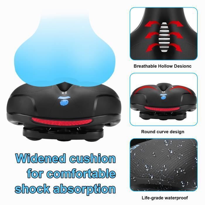 100 % imperméable et respirante : la surface, en cuir PU robuste, est entièrement imperméable et résiste aux conditions climatiques extrêmes (de -20 °C à 50 °C). Spécifications : Matériau : Tissu Oxford Couleur : Noir Dimensions : 27 × 20 × 7 cm/10,6 × 7,8 × 2,7 po Poids : 500 g Contenu de l'emballage : 1 selle de vélo confortable femme Remarque : Les dimensions sont mesurées manuellement, veuillez prévoir une marge d'erreur de 1 à 3 cm. PROMESSE DE SERVICE Pour toute question concernant nos produits, n'hésitez pas à nous contacter pour obtenir une solution. La selle de vélo confortable convient à tous les types de vélos. Outils et instructions inclus. Selle Pour Vélo Confortable CDYWD Extra Large Selle De Velo Ultra Confortable, Selle Vélo Anti Douleur, Ergonomique, Homme Femme Selle Bike Life Confort, Selle Vélo Pour Vélos Extérieurs Et Intérieurs Selle Velo Housse de protection imperméable incluse pour une protection supplémentaire. Un cadeau idéal pour les cyclistes de tous niveaux. Conception 3D ergonomique : Cette selle de vélo confortable pour femme, confortable et souple, est dotée d'une zone anatomique qui s'adapte parfaitement aux ischions. 【Installation universelle et kit complet】La selle de vélo ultra confortable femme s'adapte parfaitement à toutes les tiges de selle standard (22,2 mm de diamètre) et s'installe en quelques secondes. Selle de vélo femme ultra confortable Pour une expérience de vélo agréable et sans douleur, optez pour une selle de vélo femme ultra confortable. Conçue spécialement pour s'adapter à l'anatomie féminine, cette selle offre un soutien optimal et réduit les points de pression -- Les bandes réfléchissantes étendues améliorent la visibilité des véhicules et des piétons, augmentant ainsi la sécurité nocturne. Les points de pression sont minimisés, la circulation sanguine est favorisée et les douleurs au niveau des fesses et des nerfs sciatiques sont efficacement prévenues. Les éléments réfléchissants améliorent la visibilité de nuit. Que vous fassiez du vélo en ville, du VTT ou des randonnées longue distance, vos fesses seront comme sur des nuages. Une selle de qualité permet de réduire les douleurs et les inconforts lors des longues sorties à vélo. Sur , vous trouverez une sélection de selles de vélo ultra confortables, conçues avec des matériaux de qualité et des designs ergonomiques GUOMIS Selle de Vélo, Selle de Velo Confort, Selle de Velo Ultra L'ouverture de ventilation centrale assure une circulation d'air optimale et réduit l'humidité.