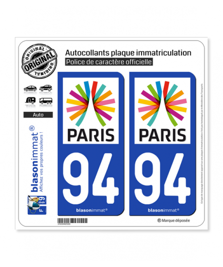 Plaque immatriculation noire Val-de-Marne 94 | Plaque Immat Clause de non-garantie Ceci n'est pas une alternative à une plaque définitive homologuée. Autocollants Plaque Immatriculation Dimension Plaque Immatriculation - Quelle Taille Auto Moto Cyclo Plaque Immatriculation Moto Impression HD sur un vinyle de haute tenue avec plastification de protection anti UV et découpe à la forme. Ils sont livrés directement découpés à la forme aux dimensions officielles H 10 cm x L 4,5 cm Lot de 4 stickers (plaque avant + plaque arrière) HADEXIA - Sticker for car number plate 94 Val-de-Marne with region of France logo : : AutomotiveProduct description Set of 2 self-adhesive stickers: 2 stickers for the front and rear number plates with the logo of your region and the corresponding department number. High performance stickers for car number plates (cars, SUVs, caravans, trailers, caravans). The size of the stickers is... Plan Val-de-Marne - Carte Val-de-Marne (ance Plus besoin de faire de nouvelles plaques pour changer de département, une simple paire d'autocollants d'immatriculation suffit ! Autocollants adhésifs haute performance pour plaques automobiles (voitures, utilitaires, caravanes, remorques, camping-cars., ., ., ) Les autocollants des régions sont réalisés selon la Charte graphique de la FIEV., Fabrication Française.
