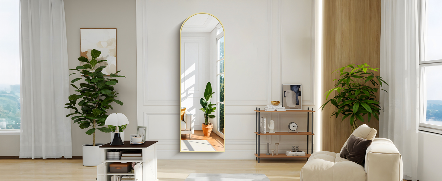 Miroir avec cadre moderne - Miroir mural design - Loftboutik Miroir Psyché Cadre Aluminium Or Verre Trempé COFENY Miroir Sur Pied Arqué, Grand Miroir Mural Avec Cadre En Aluminium 85 X 192 Cm Miroir Sur Pied Penche Ou Suspendu Pour Salon Chambre Entree Or Miroir Psyché Salon Grâce à son cadre léger, il peut être déplacé facilement et posé chez vous, à l’endroit de votre choix Détails du produit : Couleur : Noir Matériau : Verre trempé, alliage d’aluminium Poids : 12kg Contenu de la livraison :Miroir grand format Avertissement de sécurité : Pendant l’utilisation, dépliez complètement les pieds du miroir pour plus de stabilité. Doté d'un verre trempé très résistant et d'un film de sécurité, ce miroir sur pied minimise les risques de casse, assurant votre sécurité même en cas de chute Miroir sur pied l.50 x h.150 cm, miroir complet arqué pure noir - Conforama Ce miroir psyché présente un cadre arqué épuré qui ajoute de l'élégance à votre intérieur. Miroir complet arqué Pure noir, Miroir Sur Pied l.54 x H.163 cm | Leroy... Le cadre solide est conçu pour résister à la rouille tout en conservant sa finition brillante. Ce miroir intégral à poser au sol mesure 180 x 80 cm pour une vision complète de votre tenue.