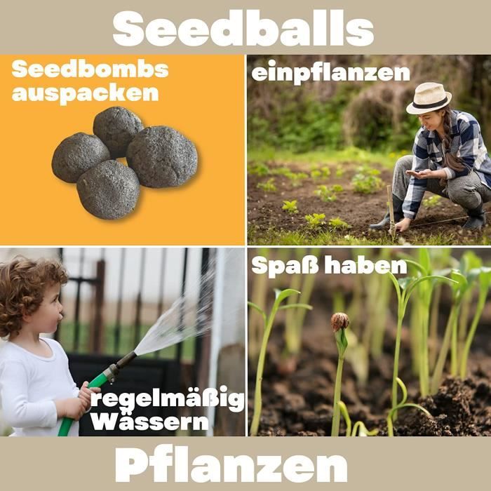 Ce coffret inclut 6 bombes à graines de fleurs. Variétés : Bombe de fleurs violettes, bombe de fleurs atlantiques, bombe de fleurs méditerranéennes, bombe de fleurs mellifères, bombe de fleurs oranges et bombe de fleurs rouges ), be pour fleur d'oranger (fleur de calendula, panure des champs, etc. Kit Semis Facile Fleurs Sauvages Resetea Lot De 6 Bombes De Graines, Fleurs Violettes, Fleurs De L Fleurs Sauvages Mélange Variétés : bombe à graines pour fleurs violettes (dé à coudre rouge, lavande, etc. Après quelques jours, elles commencent à germer. Un cadeau original et artisanal fabriqué en Espagne. Coffret de 6 Bombes Resetea - Fleurs Ce pack se compose de 6 bombes de fleurs sauvages. Un cadeau idéal pour renouer avec la nature et remplir les maisons de couleurs. Les bombes à graines sont fabriquées selon la méthode Nendo Dango, développée il y a plus de 70 ans par Masanobu Fukuoka Fabriquer des bombes à graines - Cécé from Aix ), bombe à graines pour fleurs de miel (fenouil, ciste, clématite, etc. ) et bombe à graines pour fleurs rouges (mauvre, clou de girofle, etc., ). ), bombe à graines pour fleurs méditerranéennes (levkoje, herbe, etc.