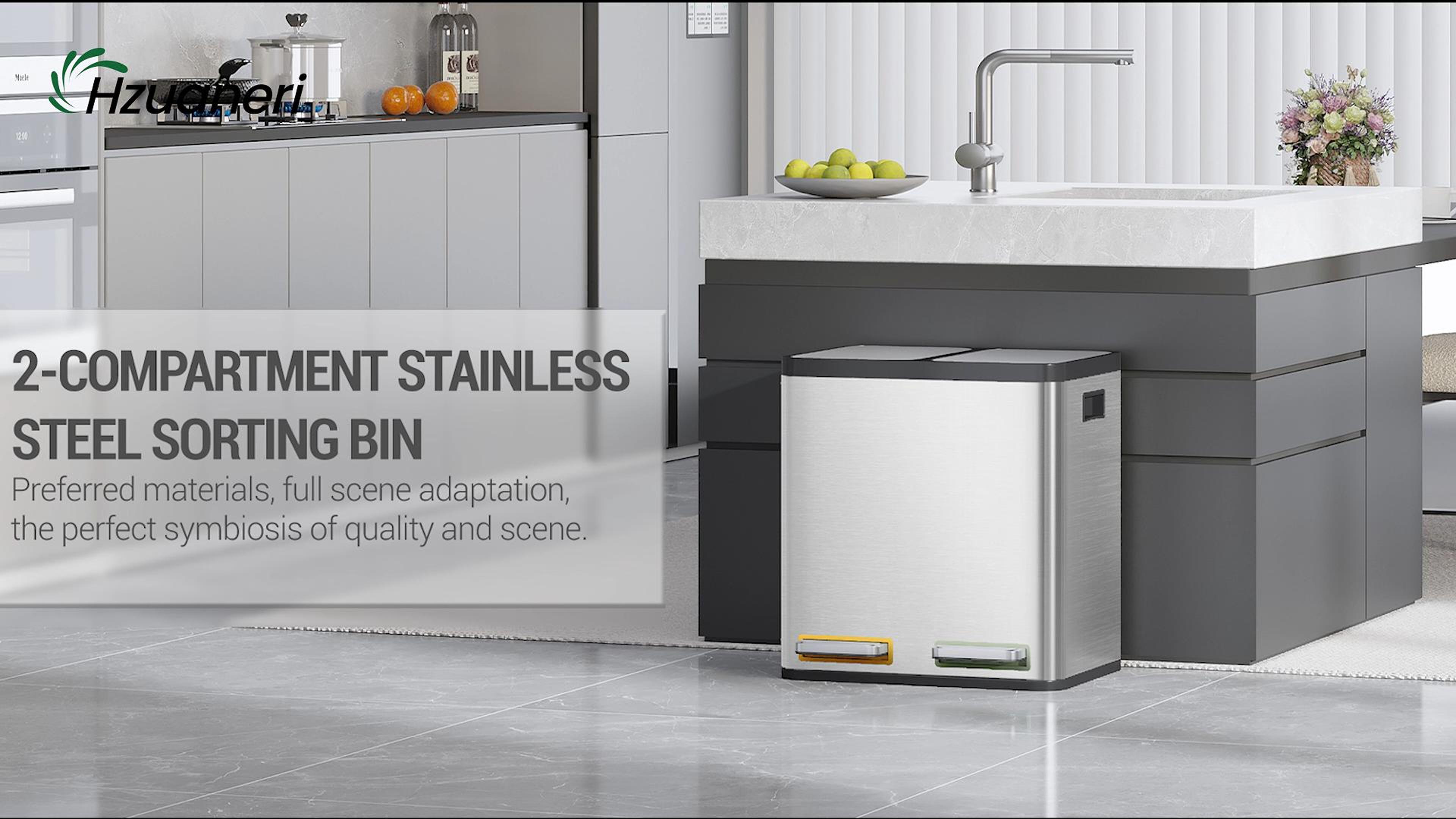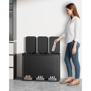Dimensions du produit (sans pédale) : 45,5 x 30,5 x 66 cm (L x B x H) Matériaux : Acier Inoxydable, Plastique Le seau intérieur amovible est en PP, résistant à l'huile et à la saleté et facile à nettoyer, ce qui le rend pratique pour une utilisation quotidienne Le cylindre intérieur est amovible pour faciliter le remplacement des sacs poubelles 【Esthétique et Grande Capacité】La poubelle de cuisine allie praticité et esthétique pour une cuisine moderne. Panneaux pour tri sélectif - lot de 3 - ON RANGE TOUT Poubelle Tri Selectif Poubelle Triple 45L SONGMICS - 3x15L Pédale Noir Acier Tri Sélectif Cuisine Poubelle Pédale 45L 【Matériaux Sélectionnés】Le corps de la poubelle tri selectif est en acier inoxydable, sa structure robuste, son apparence excellente et élégante améliorent encore notre qualité de vie. Ouverture à 90°, grand angle d'ouverture et de fermeture, facile à mettre dans la poubelle pour toutes sortes de déchets 【Descente en Douceur】La poubelle tri adopte une technologie de rembourrage en nylon, le couvercle est silencieux et retombe lentement, il n'y a pas de bruit de collision avec le métal. Pour un tri des déchets plus pratique et plus efficace, il suffit d'appuyer doucement sur la pédale pour jeter les déchets, en évitant tout contact avec les mains. Poubelle Cuisine Hzuaneri , 45L (3 X 15 L), 3, Poubelles Tri Avec Pu00e9dales U00e0 Code Couleur, Ilencieux Et Retombe Lentement, Avec 15 Sacs Poubelles, Pour Cuisine, Argent SW04599E Poubelle Tri Selectif Avec ses 3 compartiments de 15L chacun, fini le bazar du tri sélectif. Les pédales colorées vous permettent d'ouvrir le bon couvercle sans vous tromper : vert pour le verre, jaune pour le plastique, bleu pour le papier Équipée de deux poubelles indépendantes de grande capacité de 15 litres, elle répond à vos besoins de tri sélectif et peut facilement stocker les déchets ménagers et de bureau Caractéristiques : Couleur : Noir 【Avec Pédales Colorées】La poubelle tri est équipée de pédales de trois couleurs, chacune correspondant à un type de déchets, ce qui facilite l'élimination et le tri des déchets ! Chaque sac à ordures peut contenir 8 kg Dimensions de chaque seau intérieur : 25,5 x 17 x 40,5 cm (L x B x H) L'ouverture du couvercle est plus hygiénique si l'on appuie légèrement sur la pédale.