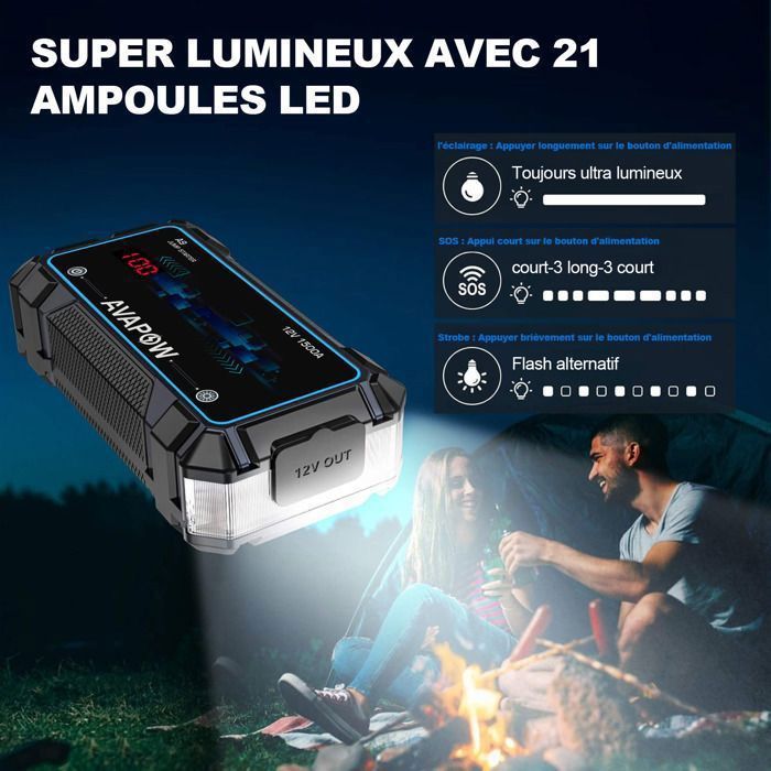 🚗【Sortie DC Pratique】Ce démarreur batterie voiture portatif est également équipé d'une sortie DC qui a une tension de sortie maximale de 15V et un courant de sortie maximal de 10A. Les 10 eilleurs Déarreurs De Batterie De Voiture - Edition Décebre 2025 Comment éteindre le produit? Le produit s’éteint automatiquement lorsqu’il ne détecte aucune charge ou lorsque la charge est terminée. Cette sortie peut alimenter vos outils électriques et d'autres appareils, ce qui est très utile. 🚗【Contenu de l'Emballage】1 * Booster voiture,1 * Câble de démarrage intelligent, 1 * Câble USB-C, 1 * Câble USB-A, 1 * Allume-cigare, 1 * Étui de transport en EVA, 1 * Manuel d'utilisation C’est l’outil idéal pour une utilisation quotidienne, les déplacements, les activités de plein air et les situations d’urgence. Le booster démarrage voiture convient aux voitures, camions, motos, motoneiges, VUS, tondeuses à gazon, bateaux, etc. Tout ce qu'il faut savoir sur le booster de batterie | Ma zone d'aide 2023 🚗【Sortie Multifonctionnel】 En plus du démarrage du véhicule, ce banc de puissance de démarrage dispose de plusieurs sorties, dont 2 sorties USB rapide et 1 entrée/sortie USB-C. Comment puis-je savoir si l’appareil est connecté au véhicule? Si le clip de batterie est connecté à la batterie du véhicule, appuyez sur le bouton”Boost”, si l’écran affiche l’icône “Boost”, cela signifie que le clip est correctement connecté. Les icônes d'avertissement et les chiffres correspondants affichés sur l'écran en cas de mauvaise utilisation peuvent vous rappeler rapidement et vous aider à utiliser correctement le booster de démarrage. [4000A Booster Batterie Voiture Puissant]Le booster batterie portable Flylinktech est équipé d’un courant maximal de 4000A et d’une grande capacité de 13200mAh pour démarrer les véhicules 12 V (jusqu’à 8,0 litres d’essence ou 6,5 litres de diesel) en quelques secondes écran LCD Sécurité Batterie FLYLINKTECH Booster Batterie Voiture, 4000A Démarreur Batterie Portable (Jusqu’à 9L Essence Ou Batterie De Secours écran LCD 🚗【Écran Amélioré】Ce démarreur voiture adopte un écran LED de 3., 3 pouces, qui vous indique clairement l'état de fonctionnement, le niveau de la batterie et les erreurs possibles, afin que vous soyez toujours au courant.
