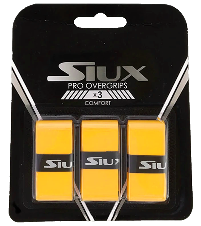 Assure une prise ferme et sûre de la lame, évitant ainsi de glisser., Résumé : Catálogo de Productos de Siux Pádel | Pādel Nuestro Overgrips Padel Siux Pro Comfort Blancos Set X3 | Cuotas sin interés Cet accessoire garantit une manipulation ferme de la lame, évitant ainsi tout glissement indésirable pendant le jeu., Points forts : La douceur du matériau est l'une de ses caractéristiques exceptionnelles, car elle empêche la formation de cloques après de longues sessions de jeu. Description du produit BLISTER OVERGRIPS SIUX PRO X3 DIVERS PERFORÉ, Ajustement parfait Ce surgrip Siux Pro X3 comprend trois couleurs en bleu, noir et jaune qui est conçu avec des tissus qui offrent une excellente adhérence et aident à éliminer la transpiration des mains Découpes latérales pour une installation et un retrait simplifiés de la surpoignée. Son design de couleur noire sophistiquée intègre des perforations qui contribuent à sa fonctionnalité. Surpoignée Tennis Jaune Fluo Antidérapante Blister De 5+1 Overgrips Pro Elite Confort Perforados Y Lisos Overgrip Confort Prise Ferme Blister
