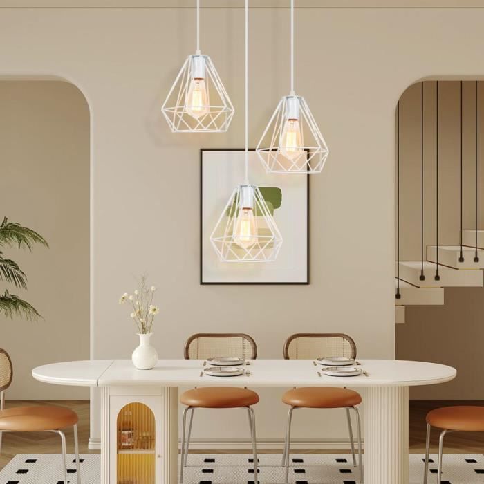 Tension: AC110-220V; Source de lumière: E27; Puissance: 40-60W; Ampoules recommandées : ampoules Edison, ampoules LED, ampoules économes en énergie (sans ampoules). PETITES ECREVISSES Luminaire Suspension Design Industriel 3 La suspension en corde de chanvre est un doux compagnon, qu'il s'agisse d'une lumière ciblée pour la lecture nocturne ou d'une chaleur brumeuse avant de s'endormir L'emballage comprend: 3 x L'abat-jour 1x la barre du plafond 1x les accessoires (Sans Ampoule) Remarqué Le colis comprend le manuel d'installation, si vous ne l'avez pas reçu, veuillez nous contacter, on vous envoie la version électronique du manuel. Spécification: Matériel: Métal et Peinture Dimensions: Ø20 x 20 cm Longeur de la base ronde: 30cm Longueur du cordon: 100cm (ajustable) Nombre d'ampoules: 3 (Sans Ampoule) Base de l'ampoule: E27 Puissance de la lampe: 60W maximum Tension: 110V ~ 240V Zone lumineuse : 8-10 ㎡ Appliquer au café, salle à manger, salon, hall, restaurant, etc. Suspension structure simple, style rétro, lignes élégantes. Non seulement l'éclairage, mais aussi la décoration pour votre maison. Ce lustre qui mélange ce côté industriel moderne et retro lui donne un aspect vraiment sympas Dimensions du lustre: Ø20 x 20 cm; longeur de la base ronde: 30cm; Longueur du corde: 100cm(ajustable) ; Couleur: Blanc; Matériau: Métal; Style: Rétro, Antique, Vintage. Suspension structure simple, style rétro, lignes élégantes. Luminaires Intérieur Plafonnier PETITES ECREVISSES 3 Lampes Lustre Suspension Industrielle Luminaire Suspension E27 Vintage Métal Forme Diamant Lampes De Plafond Abat-Jour 160mm Plafonnier Pour Séjour Chambre Cuicine Lustre Bois