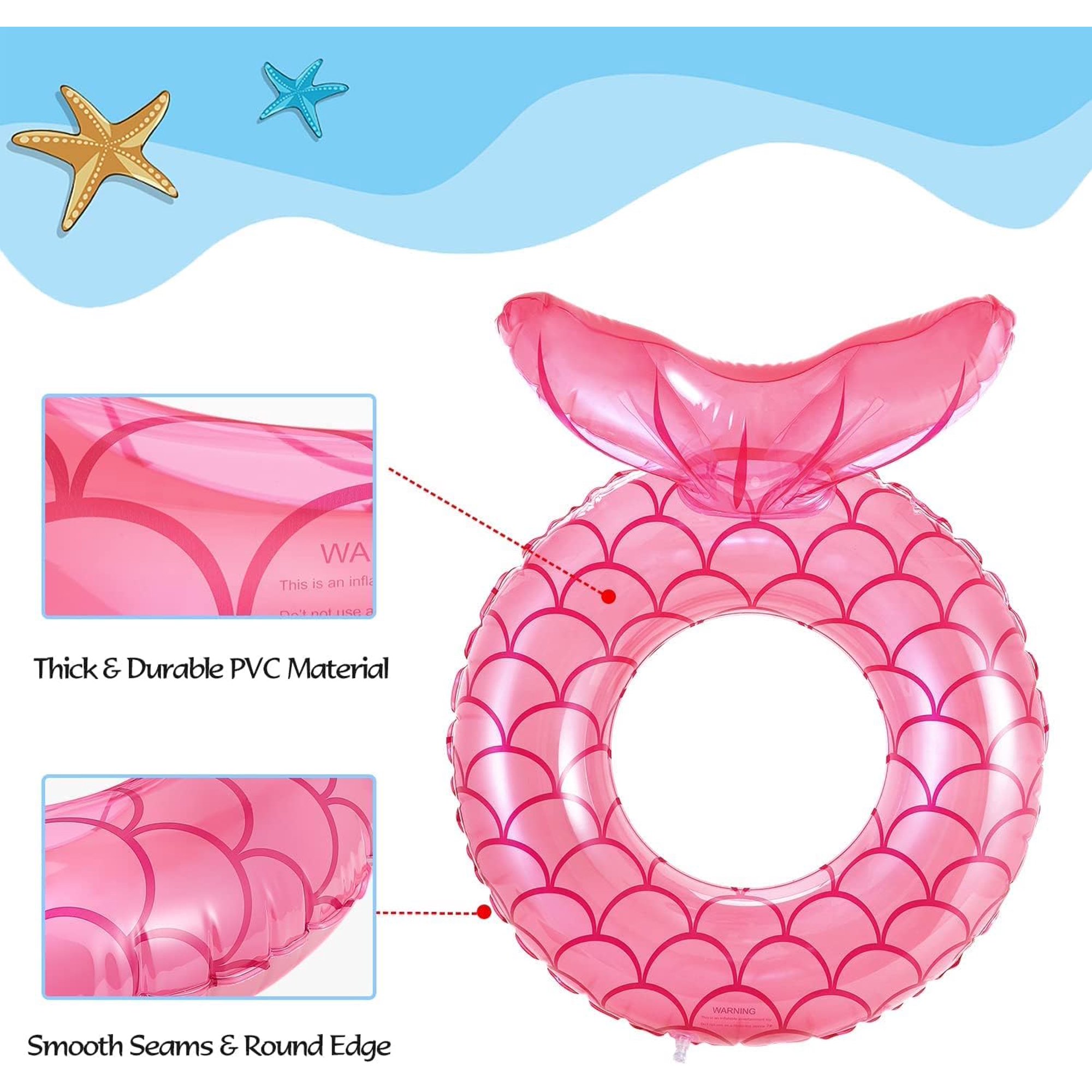 Diamant de 120 cm polyvalent: le grand diamant offre une flottabilité optimale pour adulte, les lacs, les fêtes sur la plage ou comme intérieur tendance dans la piscine de jardin, charge maximale 90kg Surveillance de l'air optimisée pour une stabilité durable: grâce à la technologie innovante à double flux et au clapet anti - retour de qualité supérieure, la bouée de natation dure jusqu'à 72 heures bien rempliée sans gonflage en Utilization normale, idée pour plus de jours de piscine Entretien professionnel pour une sécurité maximale: Nous vous recommandons de gonfleur la bouée 2 heures avant utilisation pour activer le traitement l'intégrité du matériel. Piscine - Bouée de natation gonflable en PVC pour enfants, nouveau Cette étape développement le contrôle final de l'étanchéité et une expérience de moulage optimale Design queue de poisson : Notre bouée de natation se distingue par sa superbe forme 3D de queue de sirène, ses couleurs vives et ses magnifiques motifs d'écailles de poisson, qui ajoutent une note à la fois tendance et charmante Piscine Gonflable Adulte Bouée Sirène Piscine Bouée Sirène Gonflable Piscine - 130x130cm - Vinyle Résistant - Pour Enfants Et Adultes - Bleu/Rose Accessoire Piscine Enfant Bouee Piscine Pasteque Bouées Matelas gonflable pour piscine les bouées de natation en sirène sont fabriquées en PVC respectueux de l'environnement, sûr et durable, le diamètre extérieur après gonflage est de 90 cm. Diamètre intérieur après gonflage 40 cm. Laissez-vous et votre enfant supporter facilement la flottabilité dans l'eau et profitez du plaisir...