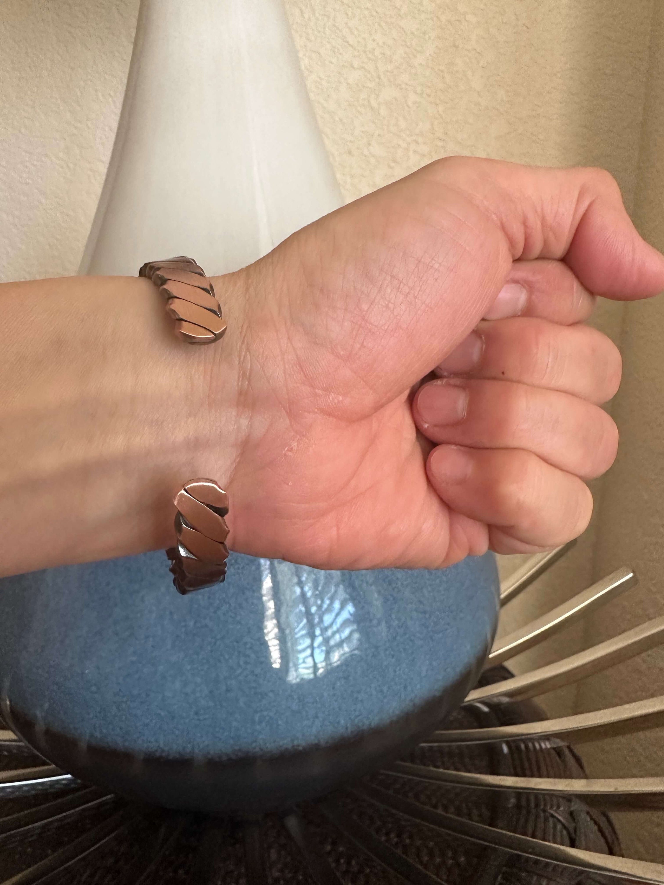 C'est l'oxydation. Après une longue période dans l'air humide, la surface en cuivre formera lentement une couche de patine. Au fil du temps, la surface en cuivre peut naturellement s'oxyder et développer une patine verte, un signe authentique de cuivre véritable qui améliore son charme vintage et son caractère unique. Qualité exceptionnelle : ce bracelet est fabriqué à la main à partir de 99,9 % de cuivre pur, offrant une sensation durable et solide avec une excellente résistance à l'usure. Évitez que le bracelet ne devienne vert en raison d'une exposition prolongée à l'eau de mer, à la sueur ou à l'eau salée. Bracelet de thérapie magnétique de force] - Ce bracelet de guérison magnétique est doté de 6 puissants aimants en néodyme qui favorisent la circulation sanguine, améliorent le métabolisme, soulagent la fatigue, équilibrent le sommeil et offrent d'autres bienfaits pour la santé Bracelet magnétique «énergie positive» en cuivre Soigneusement poli et construit pour durer, il résiste à la déformation ou à la casse même avec une utilisation à long terme. Avec son design réglable pour tous les poignets et son emballage élégant, y compris une carte de bénédiction, il transforme chaque moment significatif en un trésor intemporel. Ajustement réglable pour homme et femme : s'adapte facilement à la plupart des tailles de poignet de 16,5 cm à 22,2 cm, offrant un ajustement sûr et confortable pour les hommes et les femmes. Fabriqué à partir de cuivre pur à 99,9 %, sans revêtements ni produits chimiques. Bijou Magnétique Santé Otuuz Pour Homme Et Femme - Bracelet Manchette Solide Avec 6 Aimants - Bracelet D'énergie En Cuivre Rouge - Taille Réglable Avec Pochette En Velours, 7 5 Inch Bracelet Magnétique En Cuivre Bracelet bouddhiste torsadé - Modèle fin cuivre Chaque pièce reflète l'art de l'artisanat ancien, offrant non seulement un accessoire élégant mais aussi une touche de bien-être naturel. Le cuivre est un métal rouge, également un métal vert. Respectueux de l'environnement et exempt de placage nocif, ce bracelet en cuivre utilise la puissance des aimants en néodyme pour promouvoir le bien-être, ce qui en fait un mélange parfait de tradition, de durabilité et de fonctionnalité Les bracelets magnétiques en cuivre sont fabriqués en cuivre pur, pas en laiton, pas en alliage, pas en acier inoxydable. Donc, si votre bracelet devient vert, c'est normal et prouve que le bracelet est en cuivre pur. Un cadeau qui respire : le bracelet magnétique en cuivre naturel porte des vœux éternels de bien-être.