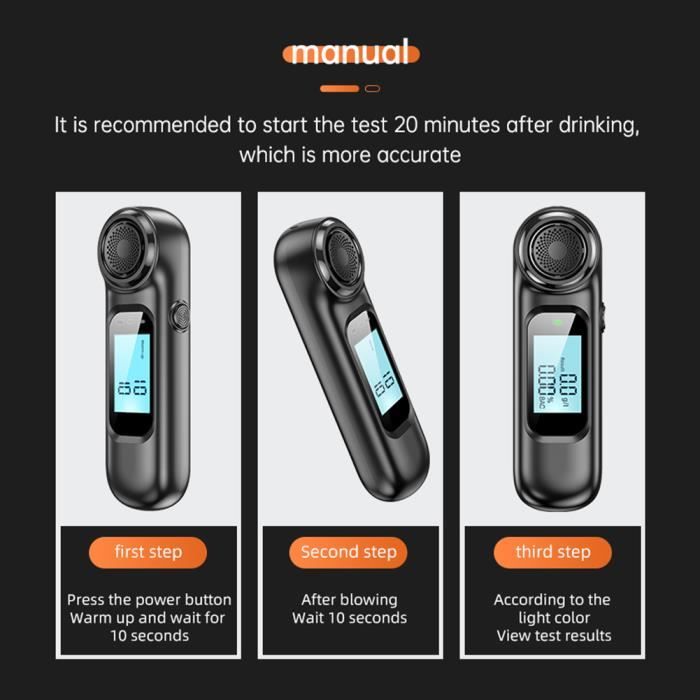 Éthylotest - Testeur d'alcool portable avec 20 embouts Éthylotest électronique Test Ethylotest Electronique à Double Capteur, Portable Testeur D'alcool Éthylotest électronique Fonctionnement Mesure précise]: Cet Ethylotest electronique certifié, est équipé d'un capteur à semi-conducteur à haute sensibilité, capable de mesurer rapidement et avec précision la teneur en alcool dans le corps Testeur d'alcool | Avertissement Protection Testeur d'haleine d'alcool...