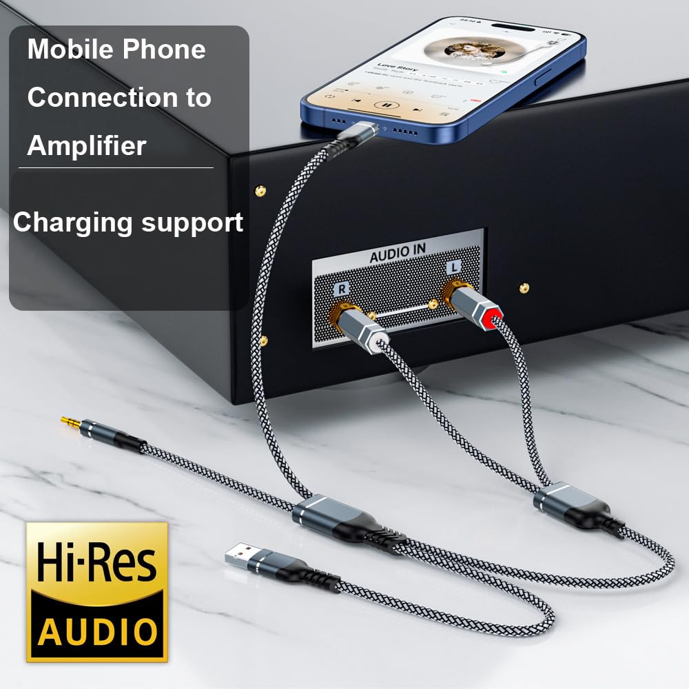 Longueur du câble : 2 m. Ce câble avec port de charge USB peut être utilisé avec un connecteur de charge pour écouter et charger de la musique en même temps. Ce câble audio prend en charge la prise jack 3,5 mm vers double RCA, USB C femelle vers double RCA, les appareils dans les amplificateurs, récepteurs AV, contrôleurs DJ, platines, barres de son, haut-parleurs, etc. Design 2 en 1, ce câble RCA prend en charge les appareils USB de type C/jack 3,5 mm vers les appareils 2 RCA rouges et blancs, offrant une solution efficace et économique pour connecter des appareils audio à des appareils de lecture avec 2 entrées RCA., Audio stéréo Hi-Fi. USB type C vers double RCA. 3m-Essager – câble Audio RCA Aux Jack 3.5mm vers 2 RCA, connecteur Y... Câble Audio 2 RCA vers type-c USB C vers double câble séparateur RCA pour iPhone Samsung Huawei HDTV mélangeur voiture prise Phono adaptateur Audio Prend en charge 2 appareils RCA : amplificateurs Hi-Fi, récepteurs AV, contrôleurs DJ, platines, barres de son, haut-parleurs, systèmes home cinéma, lecteurs DVD, Smart TV, box Sky HD, caméscopes, home cinéma, etc. Matériaux de haute qualité et traitement de surface de haute qualité, puce de mise à niveau intégrée, peut assurer la stabilité et la fidélité de la transmission du son, avec cette ligne supplémentaire, vous pouvez apporter une merveilleuse Plug and Play : connexion plug-in complète, plug and play, extérieur en nylon tressé offre une résistance et une flexibilité supplémentaires, plus doux, lisse et solide. Compatibilité avec les amplificateurs. Câble Jack 3.5 Mm Vers RCA Berfea Câble RCA, USB C Vers 2 RCA AUX, Jack 3,5 Mm 1/8" Vers Câble Audio USB C RCA Design 3 en 1 : ce câble RCA prend en charge les appareils USB de type C ou jack 3,5 mm vers les appareils 2 RCA rouges et blancs. Design du câble avec charge USB, il peut être chargé avec un connecteur de charge, jouer de la musique et charger pour téléphone en même temps Compatible avec iPad Mini 6, iPad Air 4, iPad Pro 12., 9/11, iPad Pro 2021/2020., Compatible avec OnePlus : Nord 2/9 Pro/8 Pro/7T Pro/7 Pro/7/6T. Système Plug and Play. Compatible avec Samsung Galaxy Note S24 S23 Ultra S22 S21 Ultra/S21+/S20 FE/S20 Plus/S10 Lite/Note10+/Note20 Ultra/A90/A80/Z Flip/Galaxy Fold/Tab S6 S5e S7+. Remarque : lors de l'utilisation de ce câble audio, un seul connecteur USB-C ou 3,5 mm mâle peut être connecté à la fois. Mini jack 3,5 mm vers double RCA. Audio stéréo Hi-Fi : le fil 100 % cuivre vous offre une transmission rapide et stable du signal.
