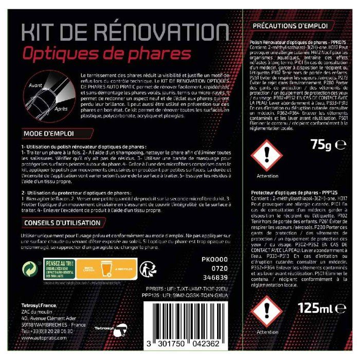 Les phares sont un motif de contre visite au contrôle technique. Kit comprenant: 1 Pad, 1 éponge scratch, 2 DISQUES de polissage P1000, 2 DISQUES de polissage P2000, 1 tube Rénovateur de phares optiques, 1 microfibre Permettre de restaurer la clarté de vos phares en seulement quelques minutes Kit Rénovation Phares Optiques KIT RENOVATION, RESTAURATION DES OPTIQUES DE PHARES Disques Polissage P1000 P2000 Kit de rénovation phares et optiques MANNOL MAN9801 pas cher Ce kit complet contient tous les accessoires et conseils pour réaliser cette rénovation simplement et efficacement sur 2 optiques. Supprime les rayures et l’oxydation de surface. Rénove les phares ternes, jaunis. Apporte une finition de protection Elles sont Vandaliser ouragan colle optique de phare acheter Siège prise